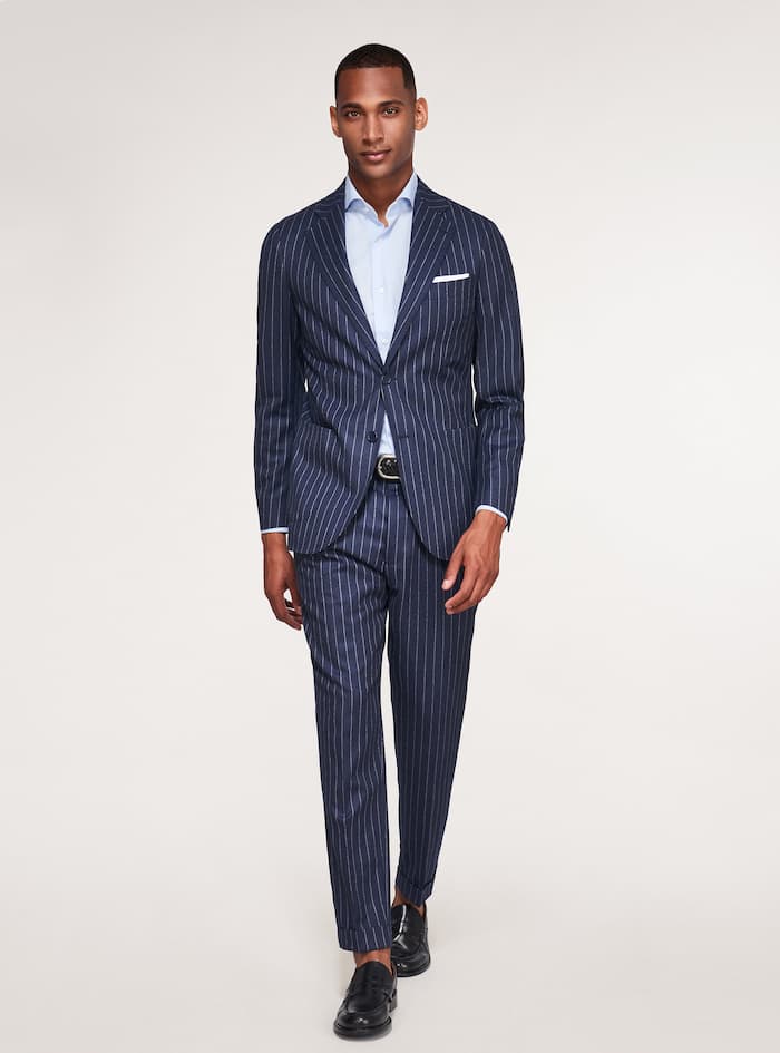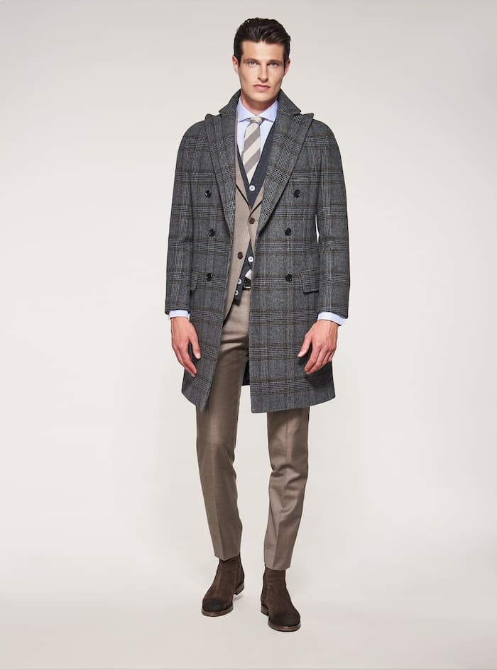 Tutti questi valori di eleganza e autenticità vengono rappresentati da abiti in tinta unita proposti in un’ampia gamma di colori, rivolgendo un importante sguardo anche a trame a righe, gessati, quadri o puntinati. Gli abiti, i blazer e i pantaloni con tagli classici dal fascino senza tempo, sono rivisitati per il completo raggiungimento di praticità, versatilità, eleganza e vestibilità unica.