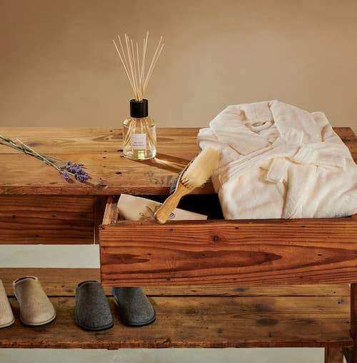 La qualità dei materiali utilizzati regala una sensazione di morbidezza sulla pelle, un piacevole momento di relax. Per camminare sulle nuvole con passi leggeri e caldi, le pantofole Acca Kappa in lana di feltro riciclata, nei colori panna, antracite e grigio, morbide creazioni che si ispirano al fascino della più classica tradizione calzaturiera. La maestria con cui le pantofole sono prodotte assicura confort e calore, il piacere di abitare la casa senza rinunciare allo stile. E per diffondere nell’aria gli aromi e le essenze dei giardini italiani più belli, una raffinata clessidra-diffusore realizzata con il vetro più puro. La clessidra Acca Kappa, dal design elegante ed etereo, è realizzata a mano tramite soffiatura a tornio e a lume, un oggetto che sposa il piacere della vista all’olfatto per respirare bellezza ogni giorno.