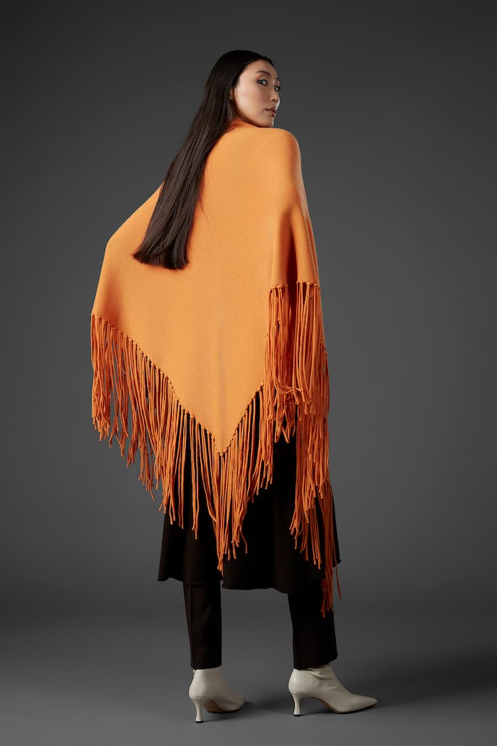 Presentate in arancione pumpkin, viola ametista e grigio petrolio, le mantelle firmate Malo sono in puro cashmere e per questo estremamente morbide, calde e avvolgenti. Uno straordinario esempio di valorizzazione del patrimonio artigianale della maison fiorentina. Le frange di ogni mantella infatti sono inserite a mano, una lavorazione che esprime al massimo la manifattura Made in Malo e la grande attenzione a ogni dettaglio. Per inserire a mano le frange, una a una, sono necessarie oltre 2 ore di lavorazione per ciascuna mantella.