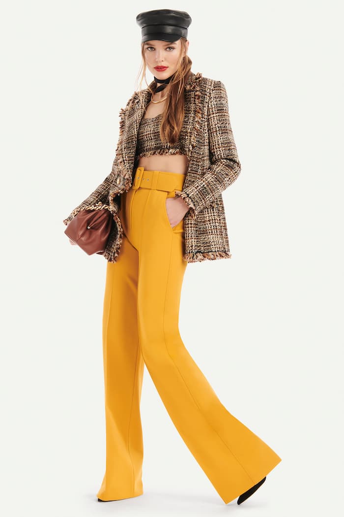 Dal long dress elegantissimo di Lady D alla minigonna girly di Claudia Schiffer, fino ad arrivare a Taylor Swift in mini check e a Brigitte Macron con la giacca sartoriale: il tartan è sempre presente nel guardaroba delle celebrties, dalle principesse di ieri alle superstar di oggi. Nato fra le verdi colline delle tempestose Highlands scozzesi come flag distintiva dei clan famigliari, il tartan è diventato poi un simbolo punk o lussuoso, rock o borghese, sempre in evoluzione ma comunque radicato al suo design inimitabile. Luisa Spagnoli ricodifica la stampa check più amata di sempre riadattandola sui mini dress e sui suits impeccabili. La giacca doppiopetto ha nuove proporzioni e diventa un mini abito chic, mentre il completo, giacca doppiopetto e pantalone a vita alta, dal fit perfetto, si impreziosisce con dettagli gold e rock come i bottoni e le spalline strutturate. Da indossare in coordinato o da spezzare con irriverenza punk, mantiene sempre e per sempre il suo fascino evergreen e unico.