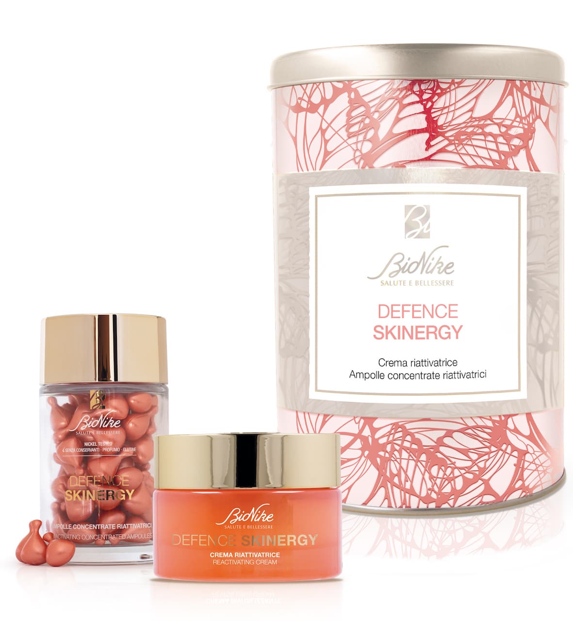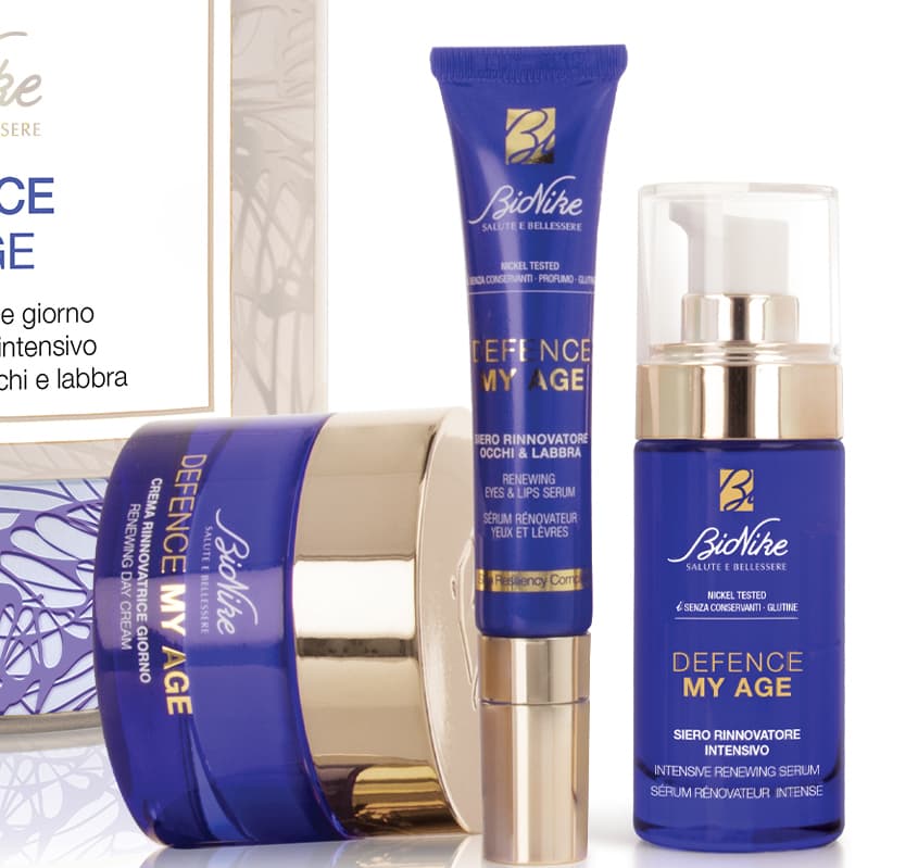 • DEFENCE SKINERGY, per riattivare la capacità bioenergetica cellulare offrendo una difesa globale dai danni dello stress e prevenendo l’invecchiamento cutaneo della pelle a 40 anni;