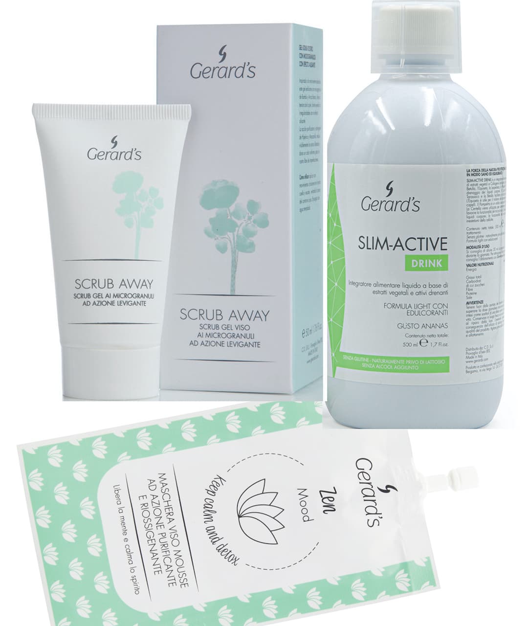 Per un effetto più rapido e immediato, Gerard’s propone il trattamento IMPACCO DEPURATIVO CON RELAX AROMATERAPICO con azione detossinante, riequilibrante e armonizzante. E’ un rituale a base di oli essenziali che purifica e depura la pelle, stimola l’eliminazione dei liquidi in eccesso e delle tossine favorendo un’azione rilassante e armonizzante. La pelle è profondamente idratata, ossigenata, luminosa e compatta, l’organismo detossinato.