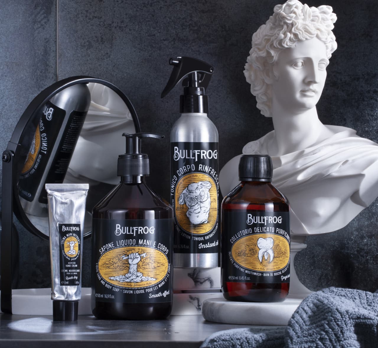 L’igiene e la cura di sé, da qualche tempo, sono diventate ancora più importanti e la voglia di circondarsi di bellezza si è fatta sentire più forte. Bullfrog ha deciso di assecondare il desiderio di un’estetica più ricercata e sorprendente reinterpretando quattro gesti quotidiani con una nuova linea di prodotti che rivoluzionano la beauty routine, nuove fragranze, texture d’avanguardia e un design capace di trasformare anche il bagno in salotto, packaging che arredano gli ambienti e lo spirito.
