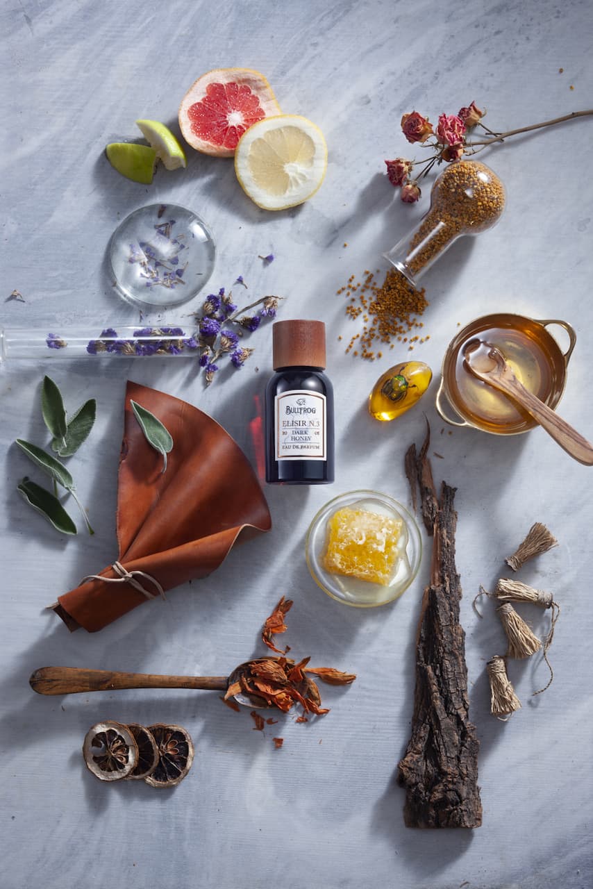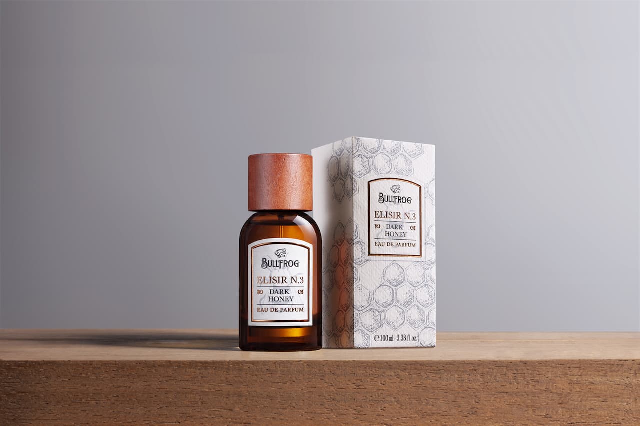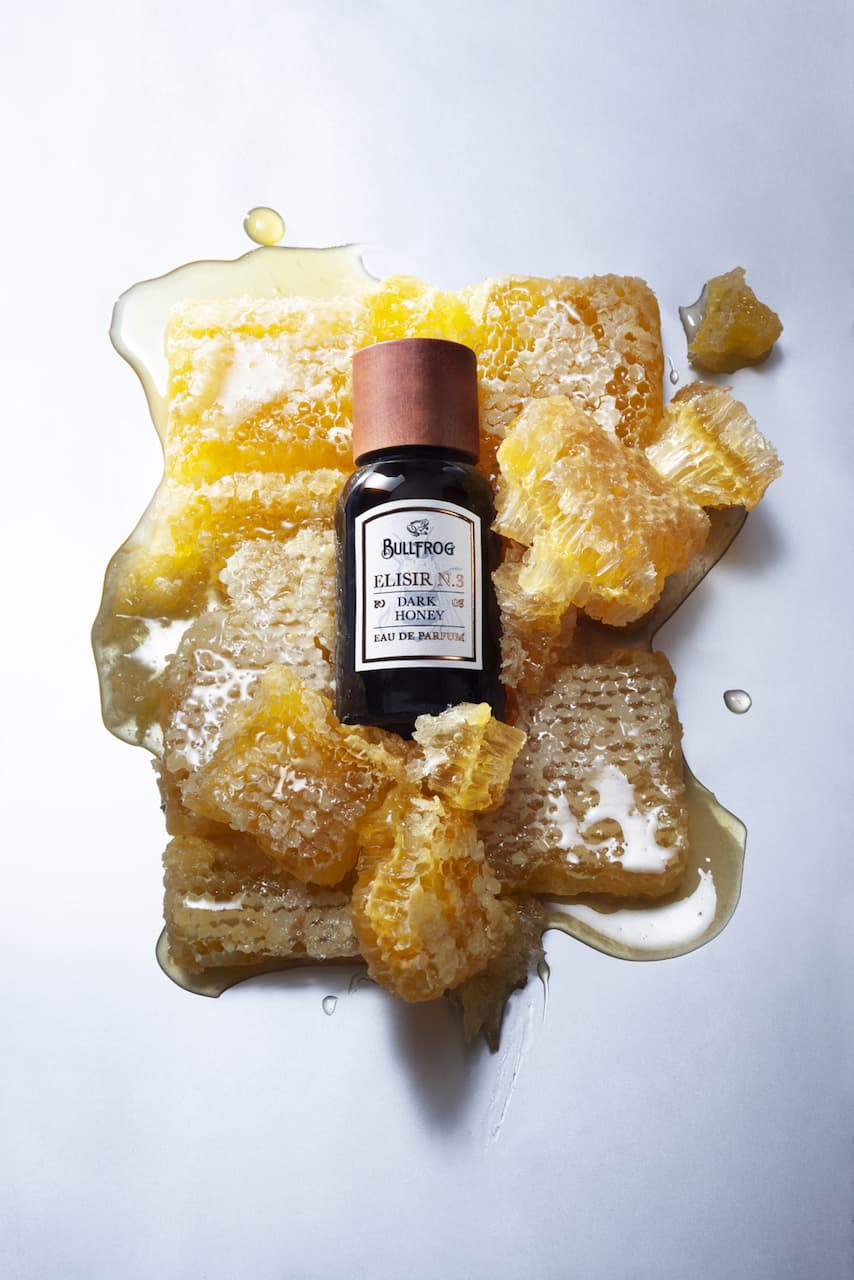 Perciò la saga di fragranze Elisir di Bullfrog Botanical Lab – il laboratorio di Bullfrog dedicato alla creazione di prodotti di altissima qualità con una selezione di materie prime naturali di origine botanica rigorosamente Made in Italy – continua con un nuovo Elisir che sposa la dolcezza del miele alla forza del cuoio e al sentore del legno in unico incanto. Dopo Deadly Nightshadel’Elisir N.1 che fa rivivere il fascino oscuro della Belladonna e Palo Santo, l’Elisir N.2 che si ispira alla tradizione sciamanica, ecco l’Elisir N.3 Dark Honey, terza tappa di un inebriante viaggio dei sensi. L’Elisir N.3 Dark Honey è un nettare prezioso e segreto che nasce dal lavoro delle api, api che producono il dolce miele ma anche un amaro veleno che, però, se usato con sapienza, è dotato di proprietà taumaturgiche, come le tradizioni farmaceutiche di fine ‘700 insegnano. Elisir N.3 Dark Honey è l’Elisir che infonde una dolcezza forte, come un abbraccio morbido ma deciso dal potere seducente, un mondo dove gli opposti si conciliano in una nuova intrigante e misteriosa armonia.