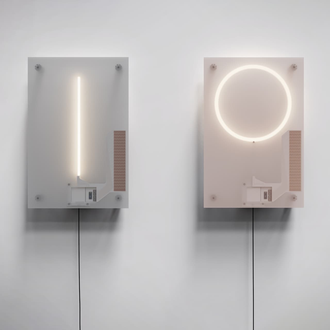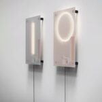 Per sottolineare queste caratteristiche, Panter & Tourron hanno allestito un foglio di Diafos con una stringa di led (la fonte luminosa) e con la componentistica elettronica, progettata appositamente, lasciata a vista. Accensione e spegnimento avvengono grazie a un dimmer disegnato in versione extra-large. I cavi elettrici, piatti, completano la trasformazione di tutti gli elementi funzionali del prodotto in dettagli estetici.
