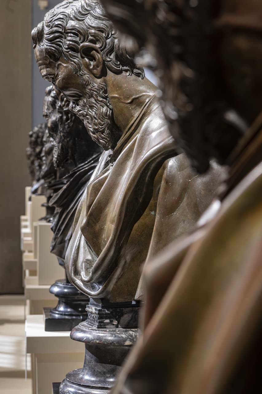 Per la prima volta sono esposti in un’unica sede i nove busti in bronzo di Michelangelo, attribuiti a Daniele da Volterra. Insieme alle tre opere già conservate a Firenze alla Galleria dell’Accademia, al Museo Nazionale del Bargello e a Casa Buonarroti, ci saranno importanti prestiti da vari musei internazionali e italiani come: il Musée du Louvre e il Musée Jacquemart-André a Parigi, l’Ashmolean Museum a Oxford, i Musei Capitolini a Roma, il Castello Sforzesco-Civiche Raccolte d’Arte Applicata a Milano e il Museo della Città “Luigi Tonini” a Rimini.