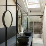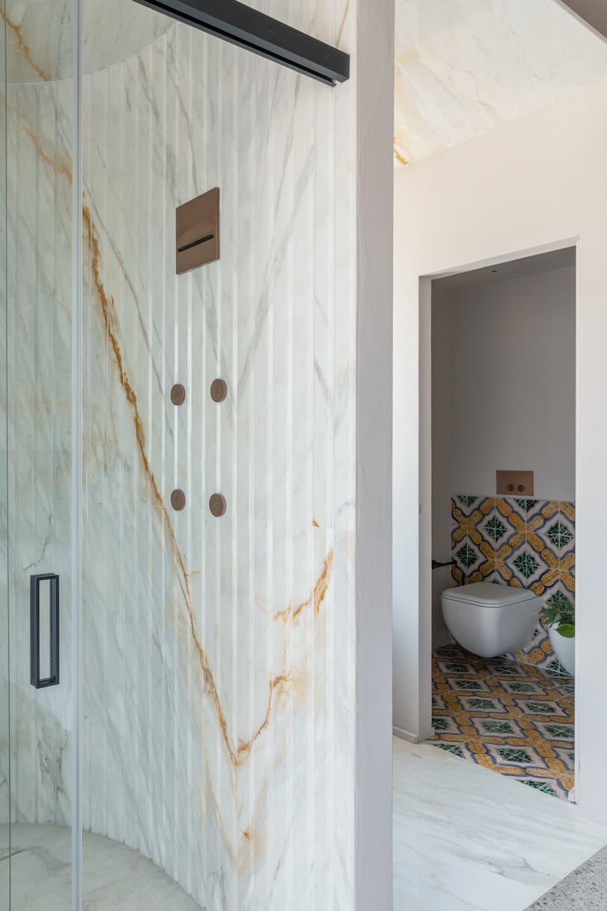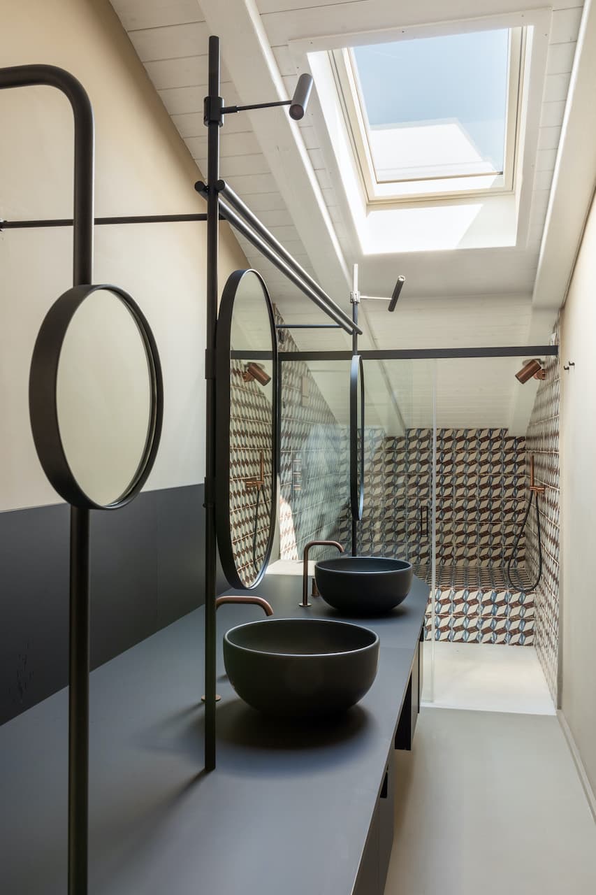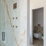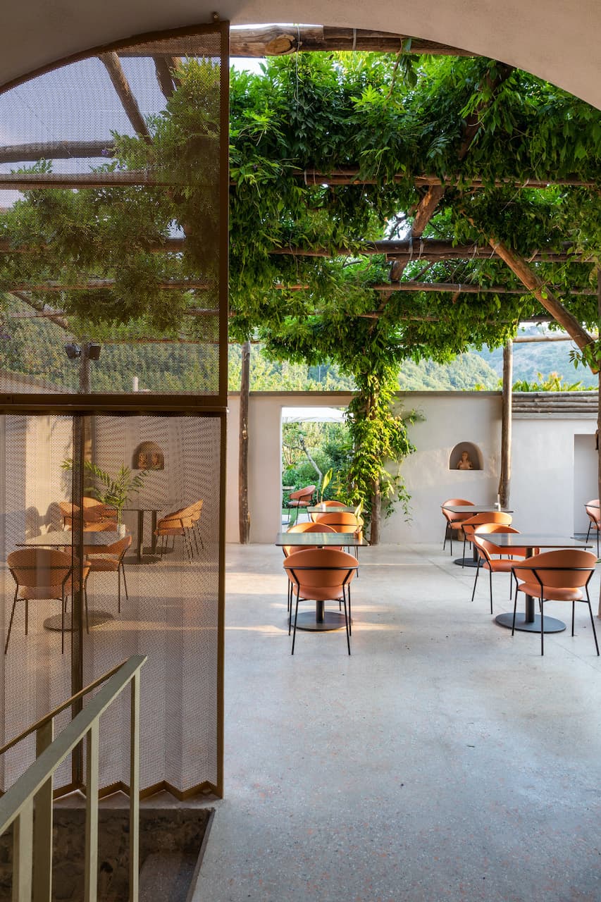 La scelta dei materiali e delle lavorazioni, l’impiego del coccio pesto, delle pietre calcaree raccolte dal terreno e il recupero delle piastrelle originali dell’edificio, rimandano fortemente al luogo e alla tradizione. Il restauro degli elementi architettonici originali preesistenti nella struttura viene affiancato dal prestigio di nuovi materiali e processi di produzione, come le pannellature in ottone brunito e la scelta degli arredi, aggiungendo valore agli interni.