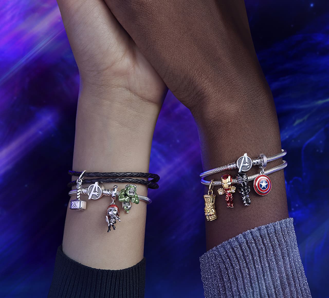 sia la loro personalità che i loro valori. Pandora, lavorando insieme agli artisti Marvel per catturare i valori di ogni supereroe e grazie all’artigianalità nell’uso di metalli e smalti, è riuscita a ricreare i costumi dei supereroi incidendo su ogni charm anche una frase simbolica che racchiuda la forza di quel personaggio.