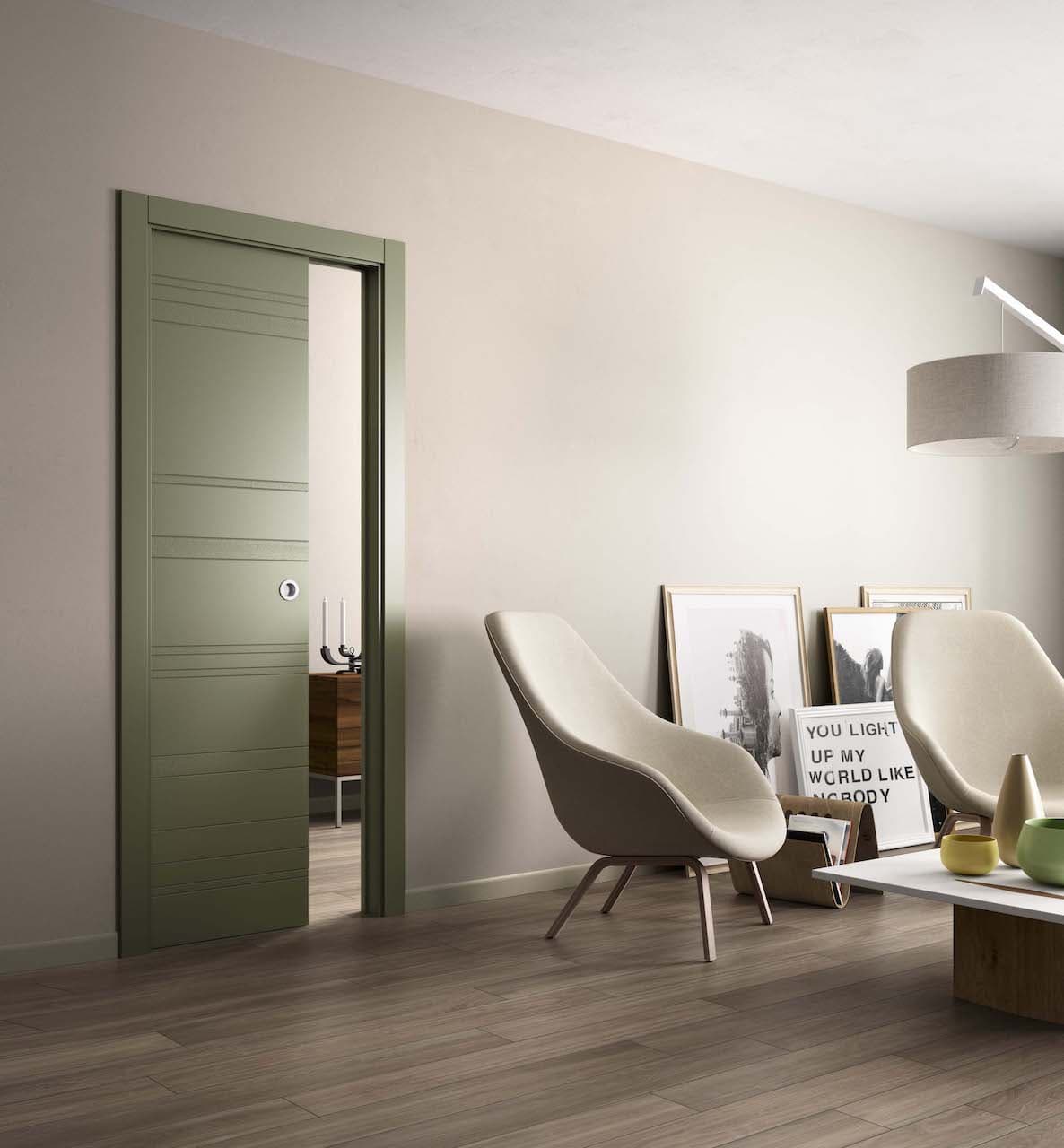 Rolling Magic è perfetto per dividere la zona giorno da quella notte e si caratterizza per lo scenografico effetto sospeso. È una soluzione semplice e pratica nell’installazione, in quanto richiede un intervento minimo. Lo scorrimento della porta avviene, infatti, tramite un binario invisibile, che le permette di scivolare lungo la parete senza lasciare dettagli in vista. Rolling Scrighi è il sistema di scorrimento salvaspazio per eccellenza: la porta infatti, scorrendo all’interno di un apposito alloggiamento, sparisce nella parete senza generare ingombri nella stanza. La soluzione è completa di telaio e di coprifilo, abbinabili con le altre porte a battente presenti all’interno della casa per coordinare l’interior design.