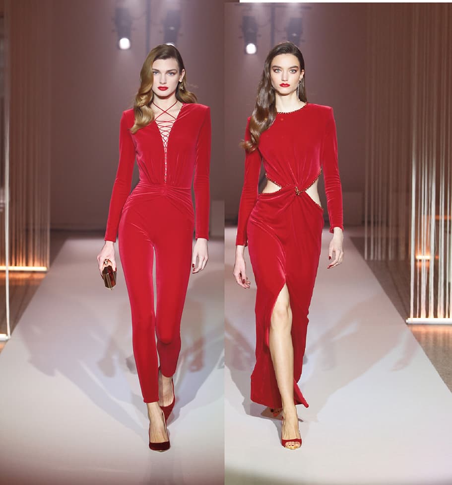 La passerella si accende di passione: il red velvet danza con il nero assoluto e si illumina nello smeraldo. I corpi fasciati e sensuali, il passo femminile e deciso sono un elogio alla bellezza e alla vanità, alla forza e allo spirito femminile. La collezione Fall- Winter 2022-23 mescola scelte estetiche e messaggi. È un manifesto contemporaneo che mette al centro l’esperienza creativa la consapevolezza del corpo è un racconto gioioso che mette in scena gli abiti in una suggestiva dimensione senza tempo.