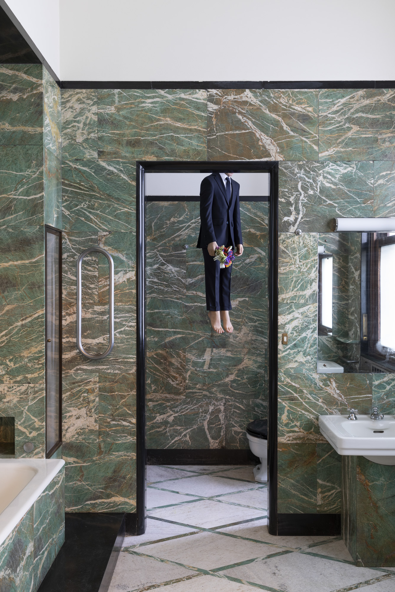 Questo intervento, che compare come una rivelazione al visitatore, ha anche il pregio di aprire le porte di uno spazio inedito della sede di viale Lombardia. L’installazione si trova infatti nel bagno progettato da Pietro Portaluppi, a cavallo degli anni 30, per la Casa Corbellini-Wasserman.