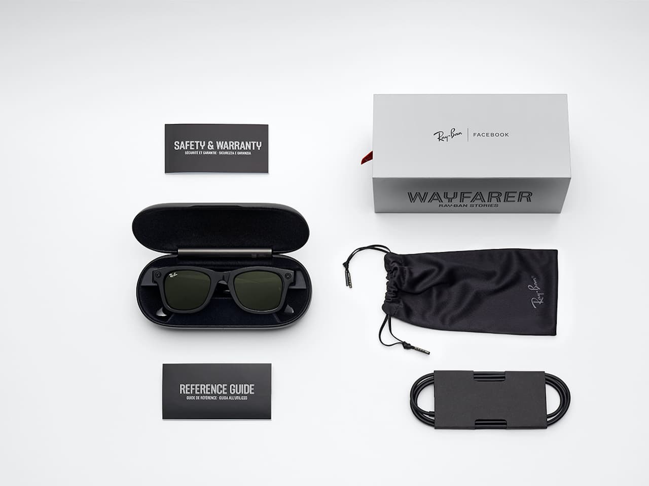 I Ray-Ban Stories hanno in dotazione una custodia compatta che funge anche da caricabatteria portatile.