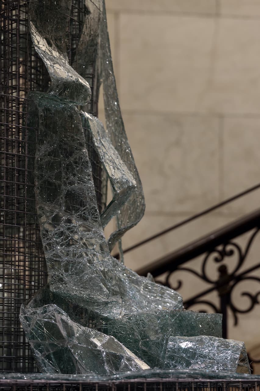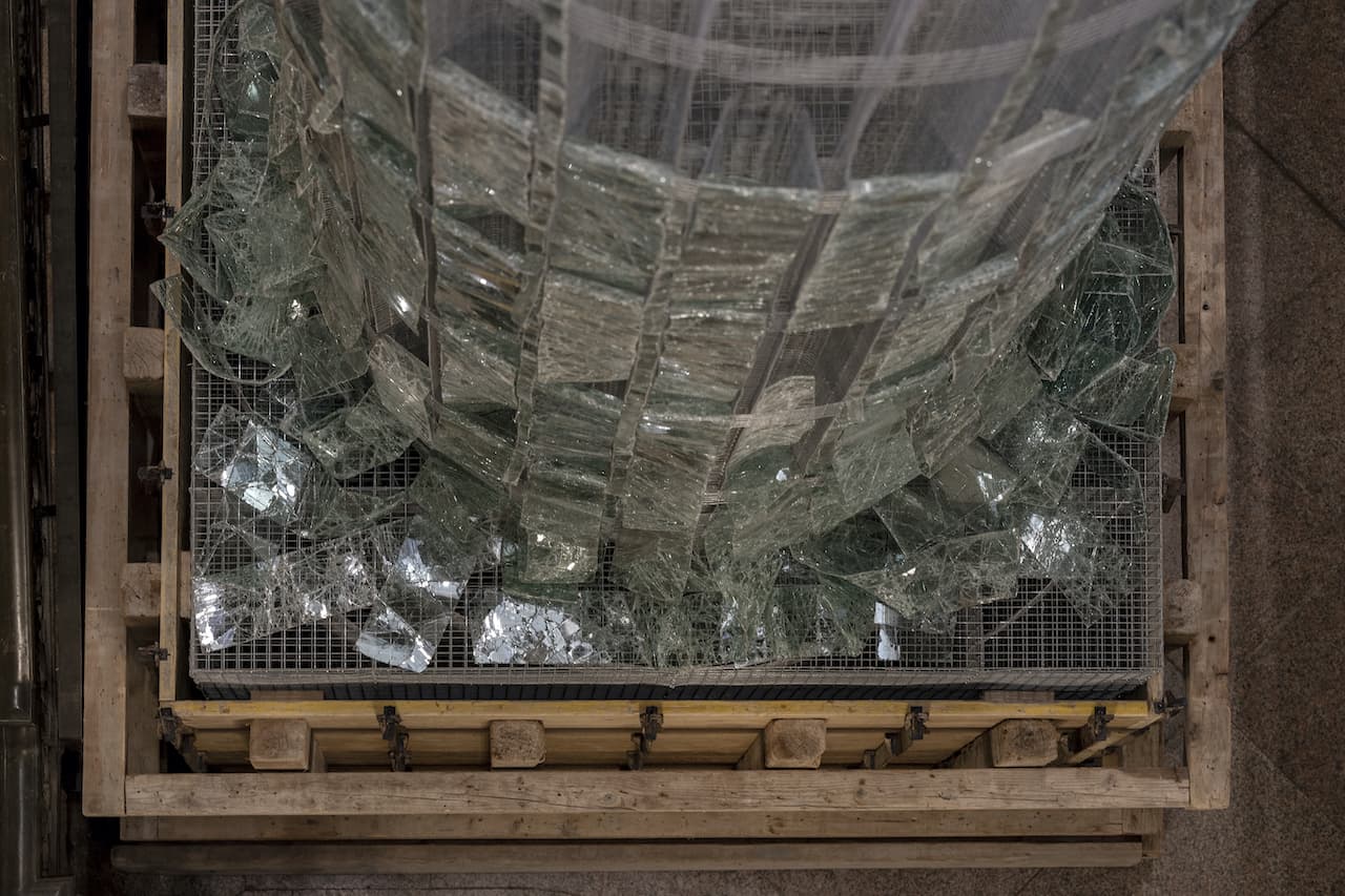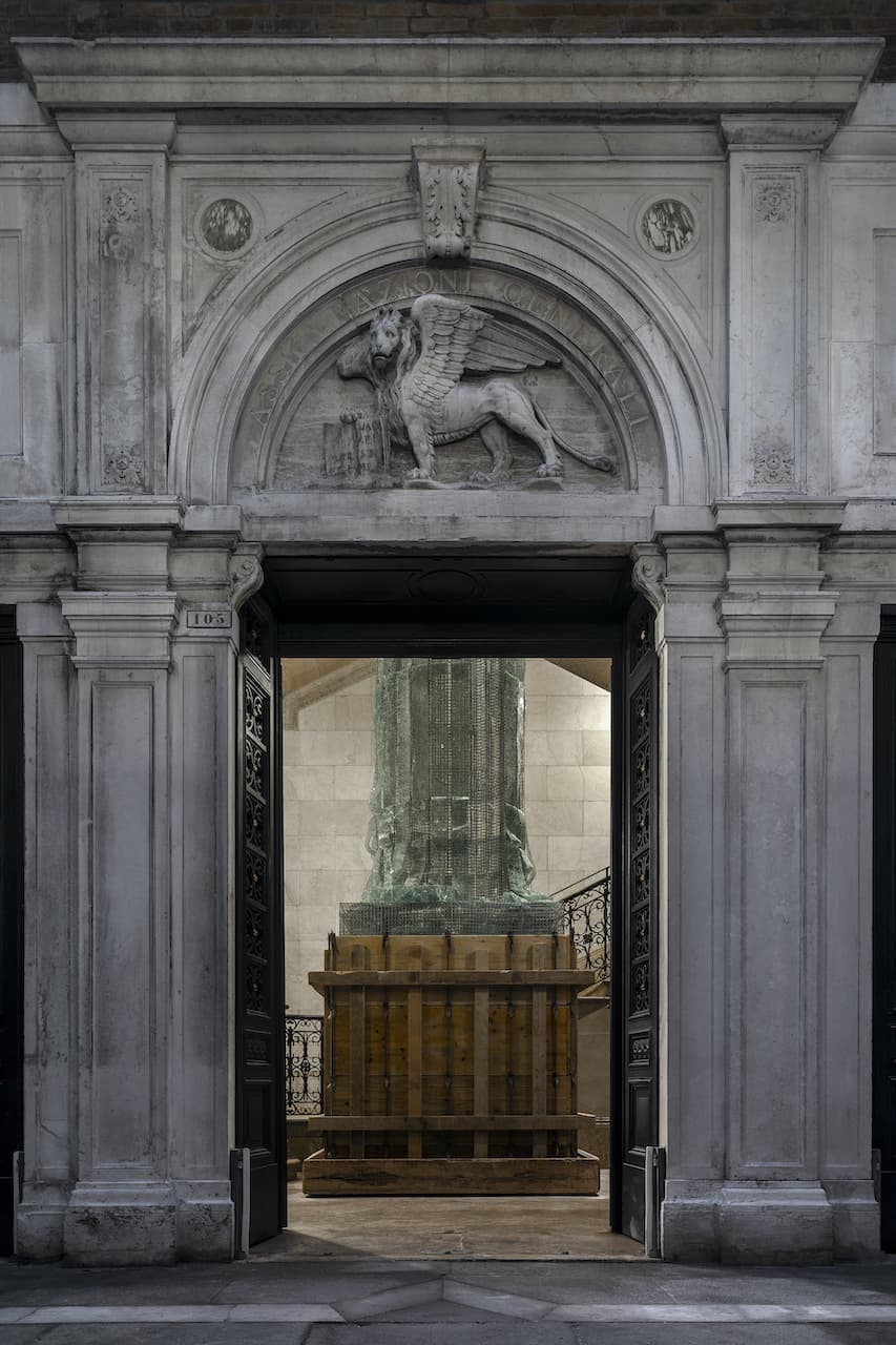 La colonna è posizionata nello spazio attorno al quale si sviluppa lo scalone delle Procuratie Vecchie. Le sue proporzioni dialogano con quelle del vano e il visitatore è invitato a una visione ravvicinata che sovverte la tradizionale retorica del monumento: salendo la scala lo spettatore ha modo di vedere la colonna nella sua interezza, dalla base all’estremità, in un cambio di prospettiva che innesca a sua volta un ribaltamento concettuale.