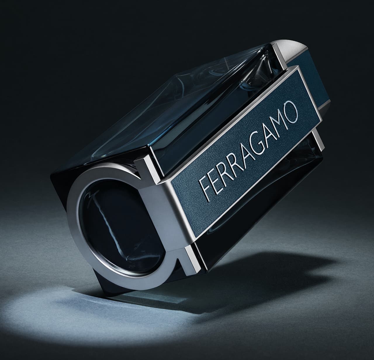 La sua forma allungata richiama il paesaggio urbano in cui vive l’uomo Ferragamo: come un grattacielo, il flacone invita a scoprire i suoi dettagli dalle diverse angolazioni. Un inserto verticale effetto-cuoio valorizza la silhouette attraversandola in lunghezza per mettere in risalto il nome del brand, dall’alto verso il basso. Ai due estremi, grazie a un cambio di prospettiva, spicca un altro dei codici chiave della Maison: la caratteristica fibbia Gancini in metallo decora e sigilla sia la base che la sommità del flacone. Molto più che un semplice ornamento, il doppio Gancini simboleggia il sentimento di unione evocando i molteplici aspetti che coesistono nell’uomo Ferragamo: tradizione e innovazione, concretezza e creatività, forza e sensibilità.