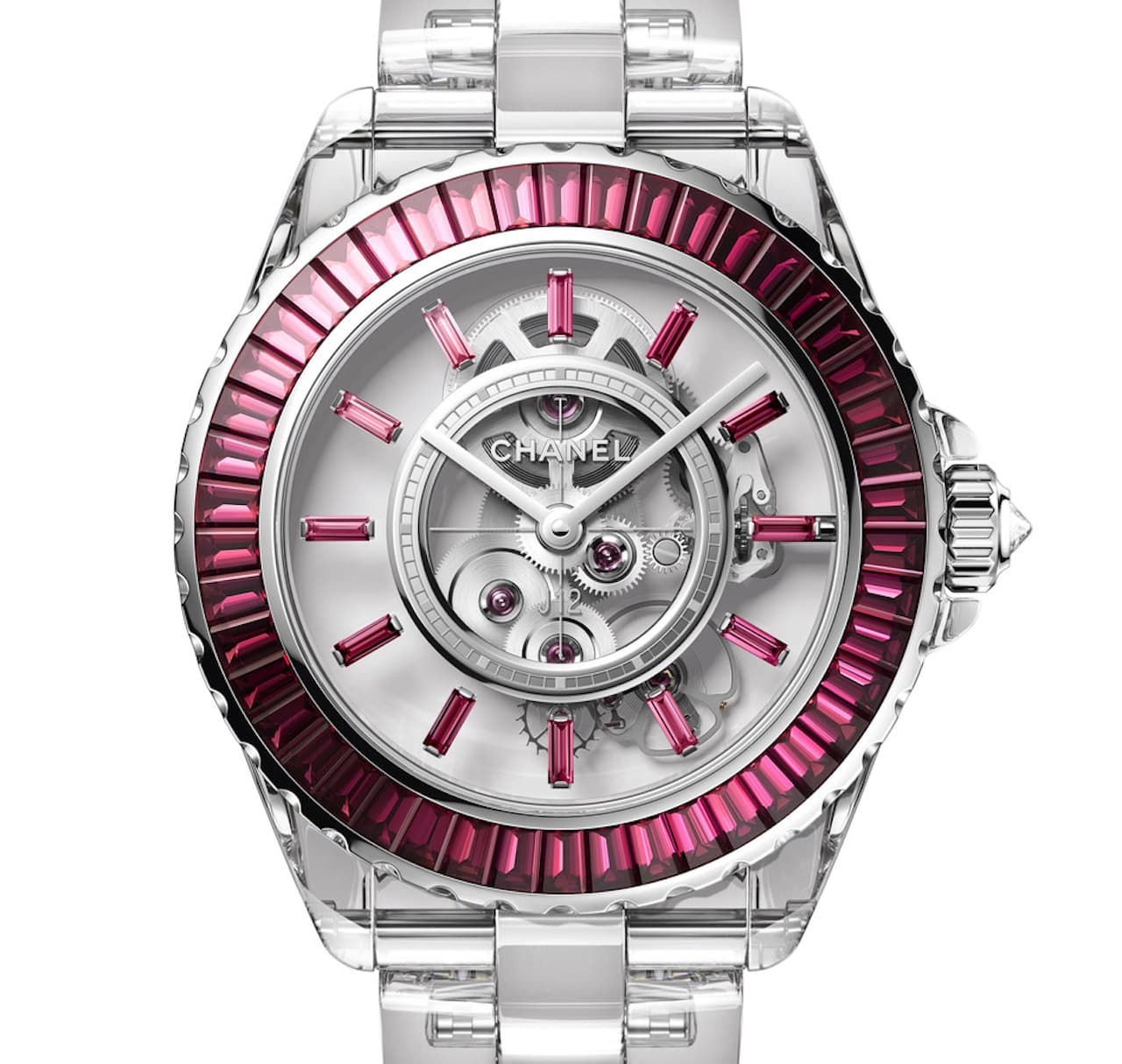 Nel 2020, in occasione del ventesimo anniversario del J12, CHANEL ha messo in luce il concetto di trasparenza e ha presentato il J12 X-RAY. Nel 2022, la J12 X-RAY RED EDITION ROUGE svela le sue curve e quelle del suo movimento. La silhouette J12 rimane invariata, ma l’accento sul rosso, uno dei colori distintivi della Maison, aggiunge una nota di contrasto al look. Simboli di vita e passione, i rubini accentuano il carattere unico e sofisticato di questo segnatempo. Il movimento si presenta come un frammento grafico di pizzo ricamato con ponti e ruote dentate, secondo le regole dell’arte dell’Alta Orologeria. Le ruote dentate del Calibro 3 sono ancora presenti, ma grazie al vetro zaffiro i ponti sono ingegnosamente scomparsi.