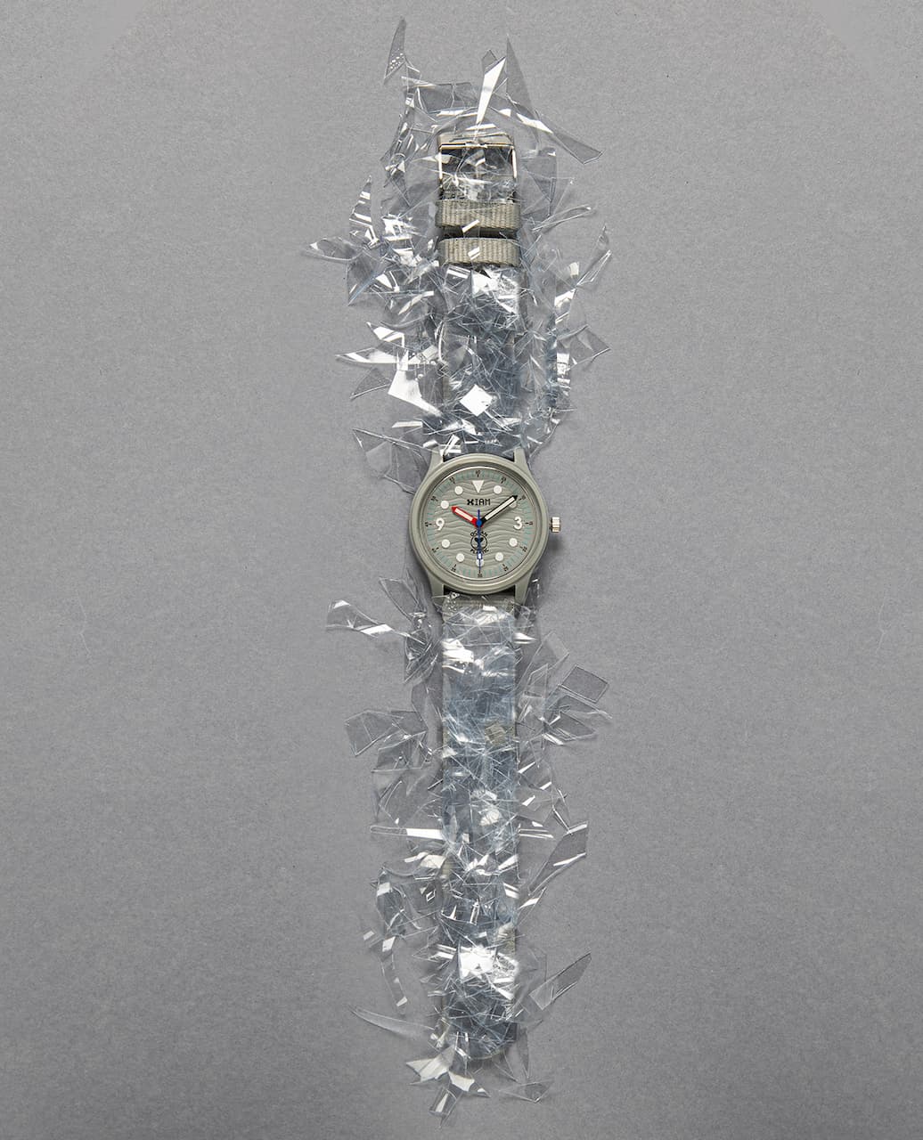 All’interno del quadrante, con pattern che ricorda le onde del mare, gli indici dalla forma circolare e le cifre arabe poste a ore 3 e 9 si caratterizzano per il materiale luminescente che assicura una perfetta leggibilità dell’ora. Il logo XIAM è posto a ore 12, a ore 6 compare l’iscrizione Ocean Plastic.