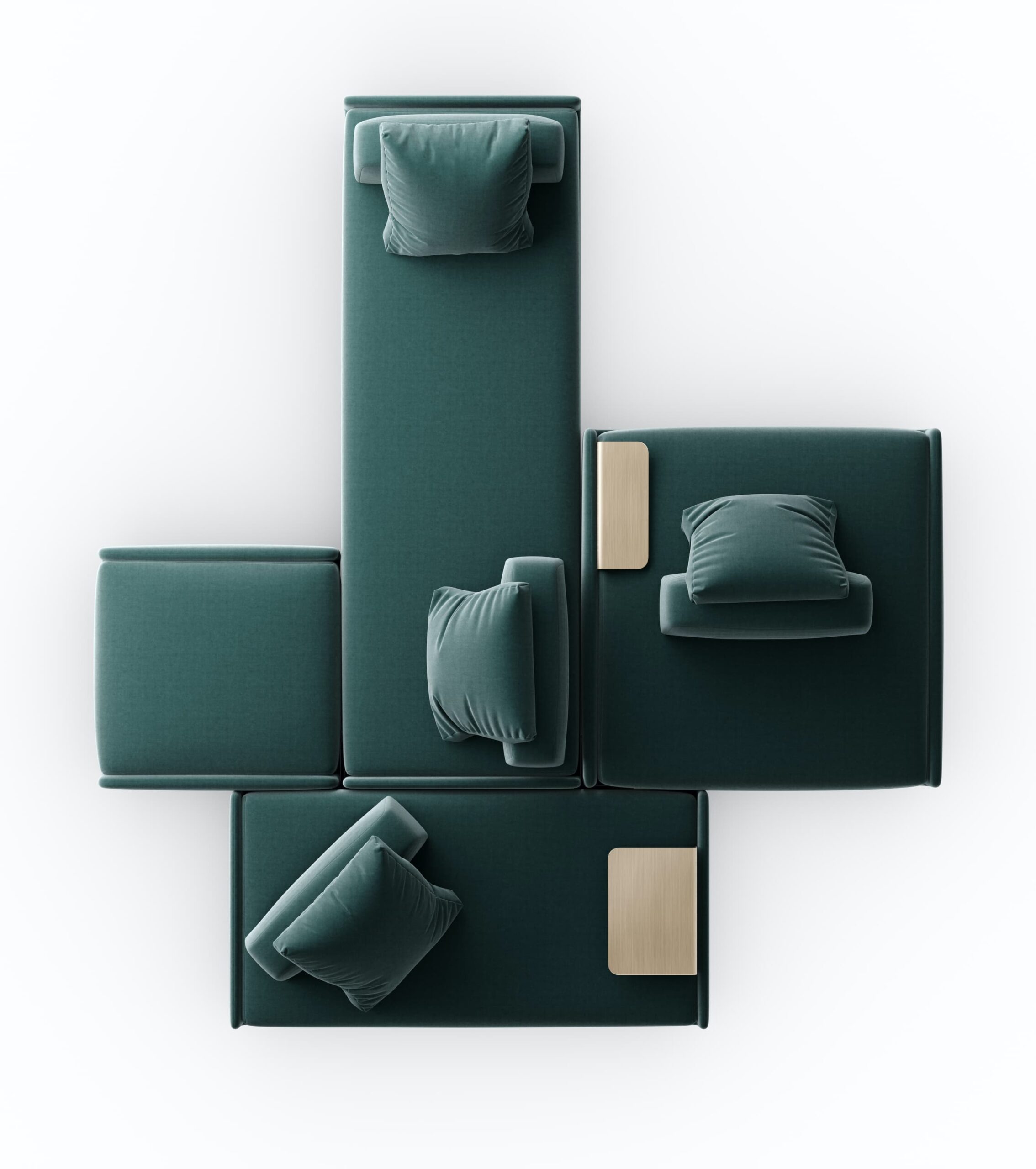 - Sedute: 143 x 143 x 38 cm; 95 x 95 x 38 cm; 190 x 95 x 38 cm; 275 x 95 x 38 cm; 160 x 50 x 38 cm
