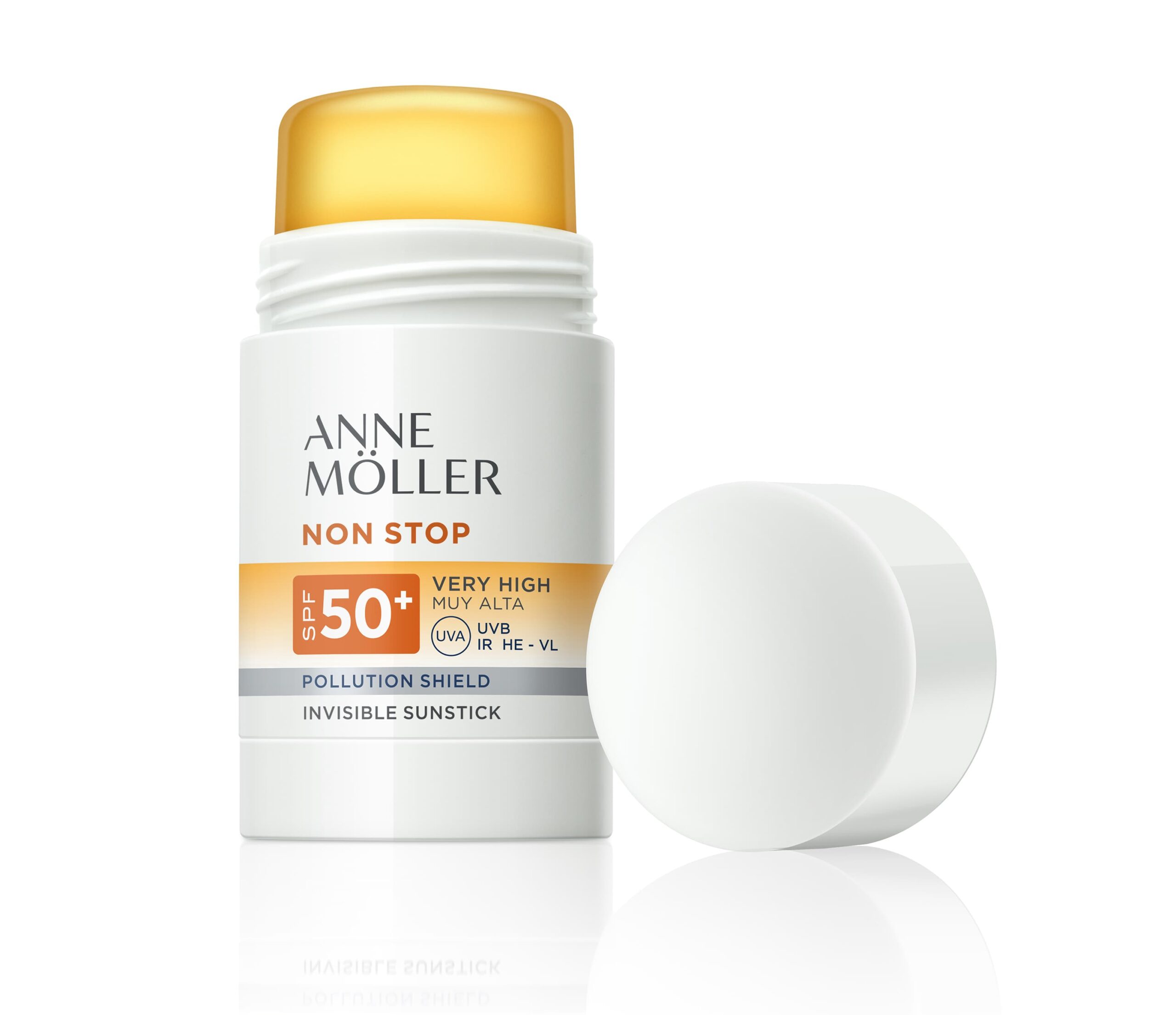 È un prodotto all-in-one fragrance free, SPF 50+, resistente all’acqua e al sudore. La forma solida è estremamente leggera e non lascia tracce di unto né le classiche striature bianche dei prodotti con un alto SPF. Oltre al magico cocktail di attivi della Global Defense Technology™ specifico per i prodotti solari della linea Non Stop di Anne Möller, il nuovo Invisible Sunstick contiene un derivato naturale dell’olio di cocco che nutre la pelle senza renderla lucida e oleosa. La formula contiene anche un alto dosaggio di Vitamina E, un potente antiossidante cutaneo.