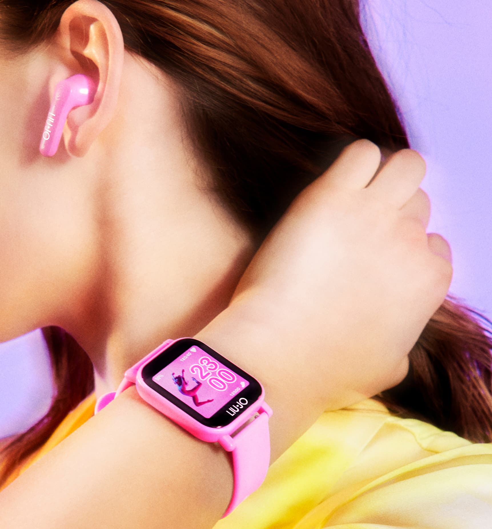 A completare questa speciale capsule, una versione degli auricolari bluetooth Liu Jo monocromo con un’ampia gamma di tonalità frizzanti, per dare vita ad un divertente e colorato mix&match tecnologico.Lo smartwatch Teen si presenta come il perfetto accessorio glam-tech, curato nei minimi particolari e con quel tocco di vivacità regalato da una palette colori energica e brillante.
