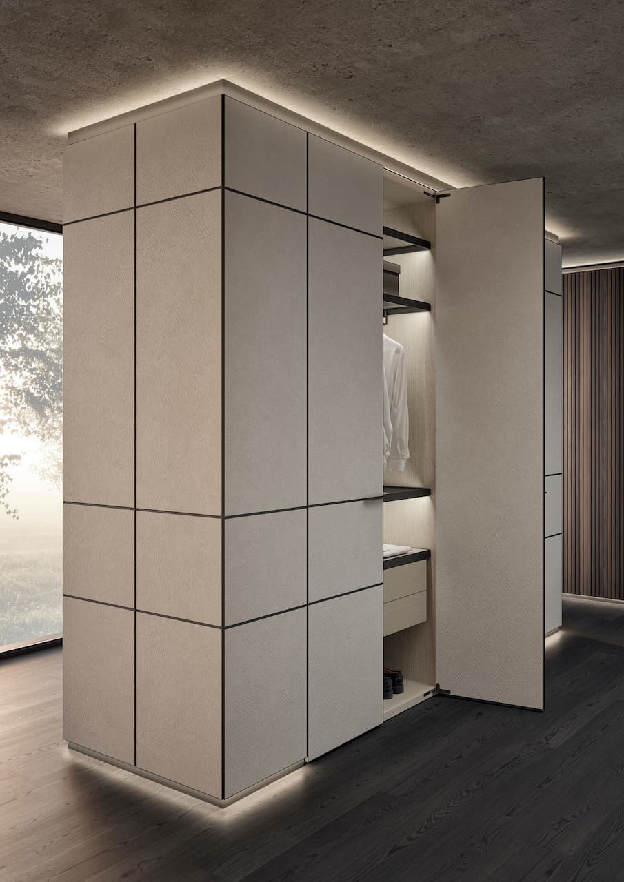 “Le nuove boiserie sono pensate per essere integrabili con tutte le attrezzature giorno e notte, oltre che completamente personalizzabili nelle finiture. Questo apre un ventaglio di soluzioni d’arredo potenzialmente infinito e largamente customizzabile, espressione massima e quintessenza dell’attitudine sartoriale di MisuraEmme”. – Ottaviano Borgonovo co-owner MisuraEmme