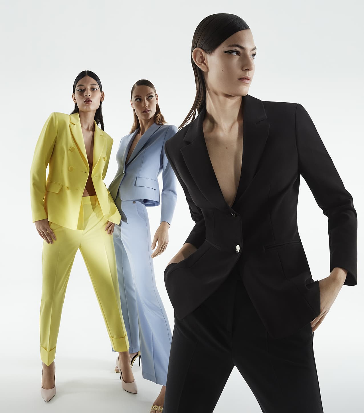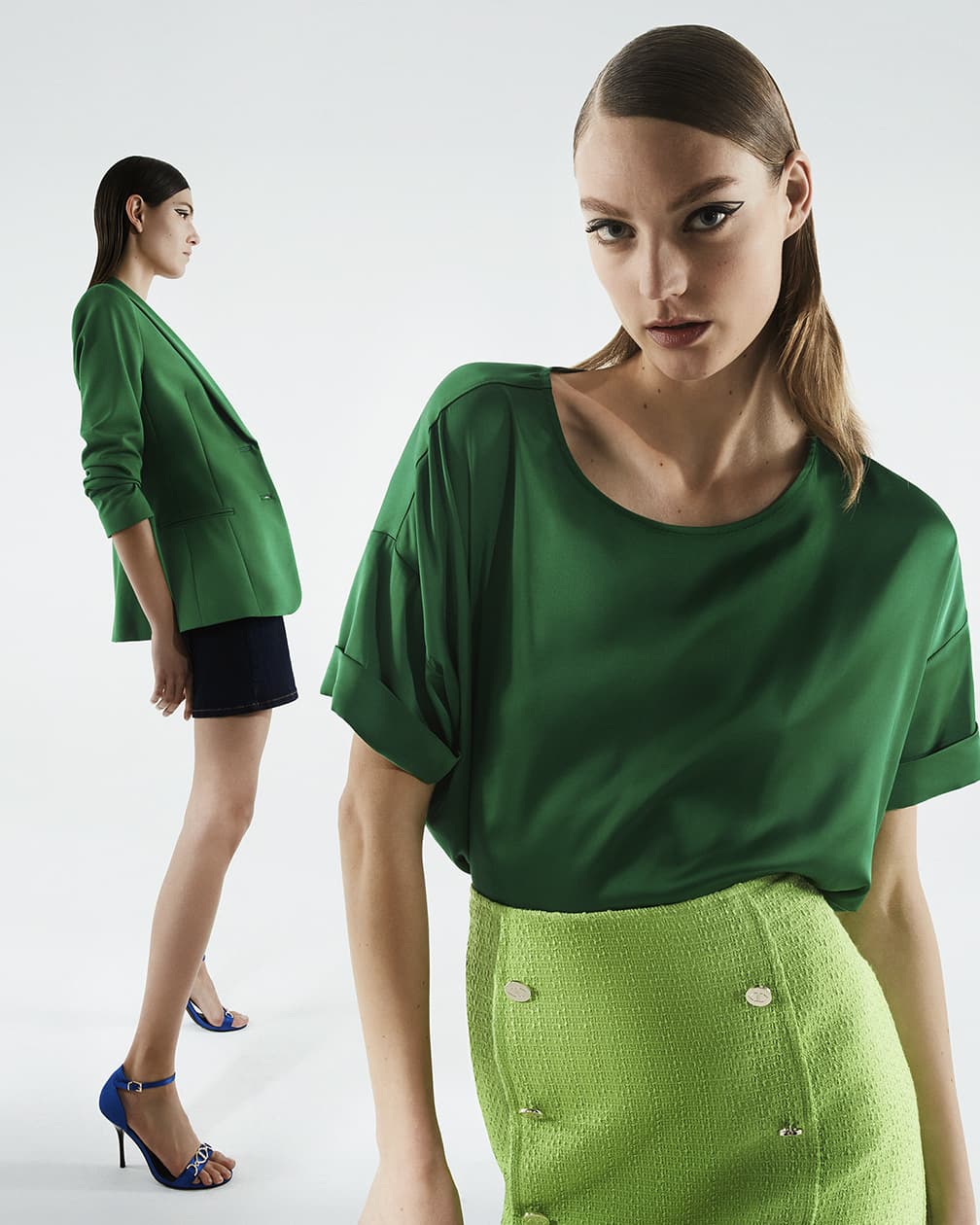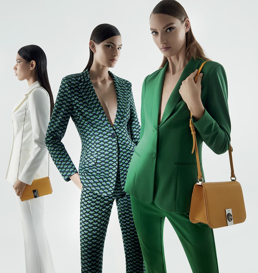 La campagna SS 2022 è espressione di questa nuova sensibilità, traduce ed interpreta l’iconografia di una collezione fortemente caratterizzata. Capi chiave i tailleur sartoriali, potenti grazie a tagli decisi e colori saturi. Blazer e pantaloni rosa shocking, blu elettrico, arancio ipervitaminico, verde bosco, celeste e total black, ma anche micro stampe tapestry, pattern e cromie senza compromessi che mirano ad esaltare le donne che li indossano.