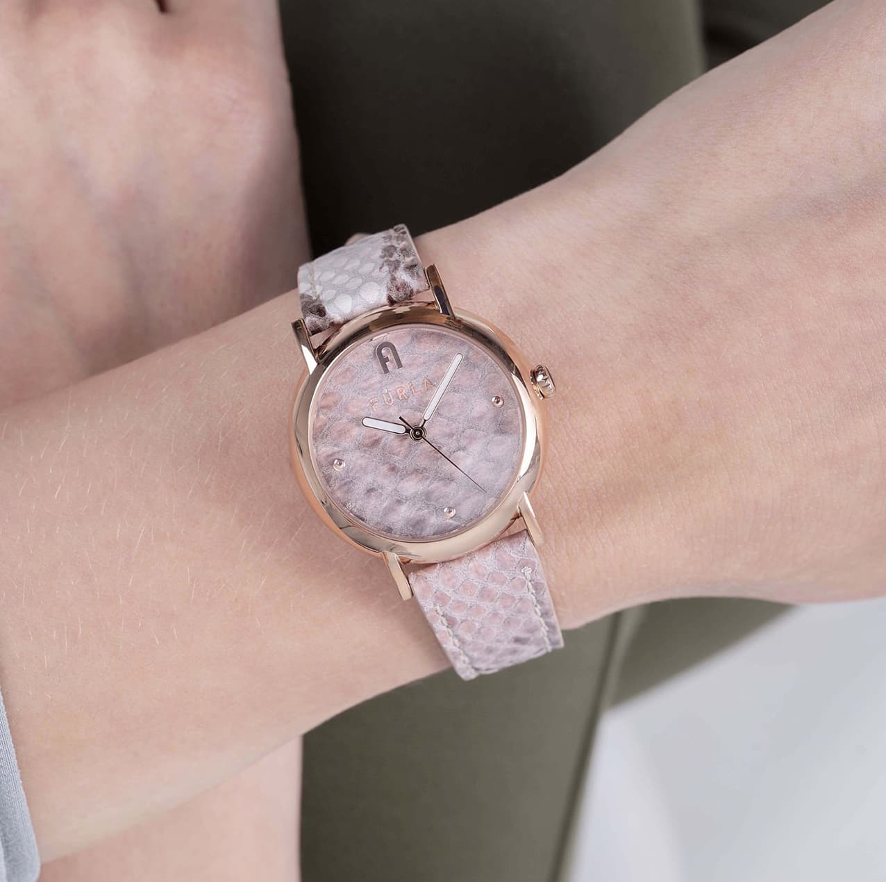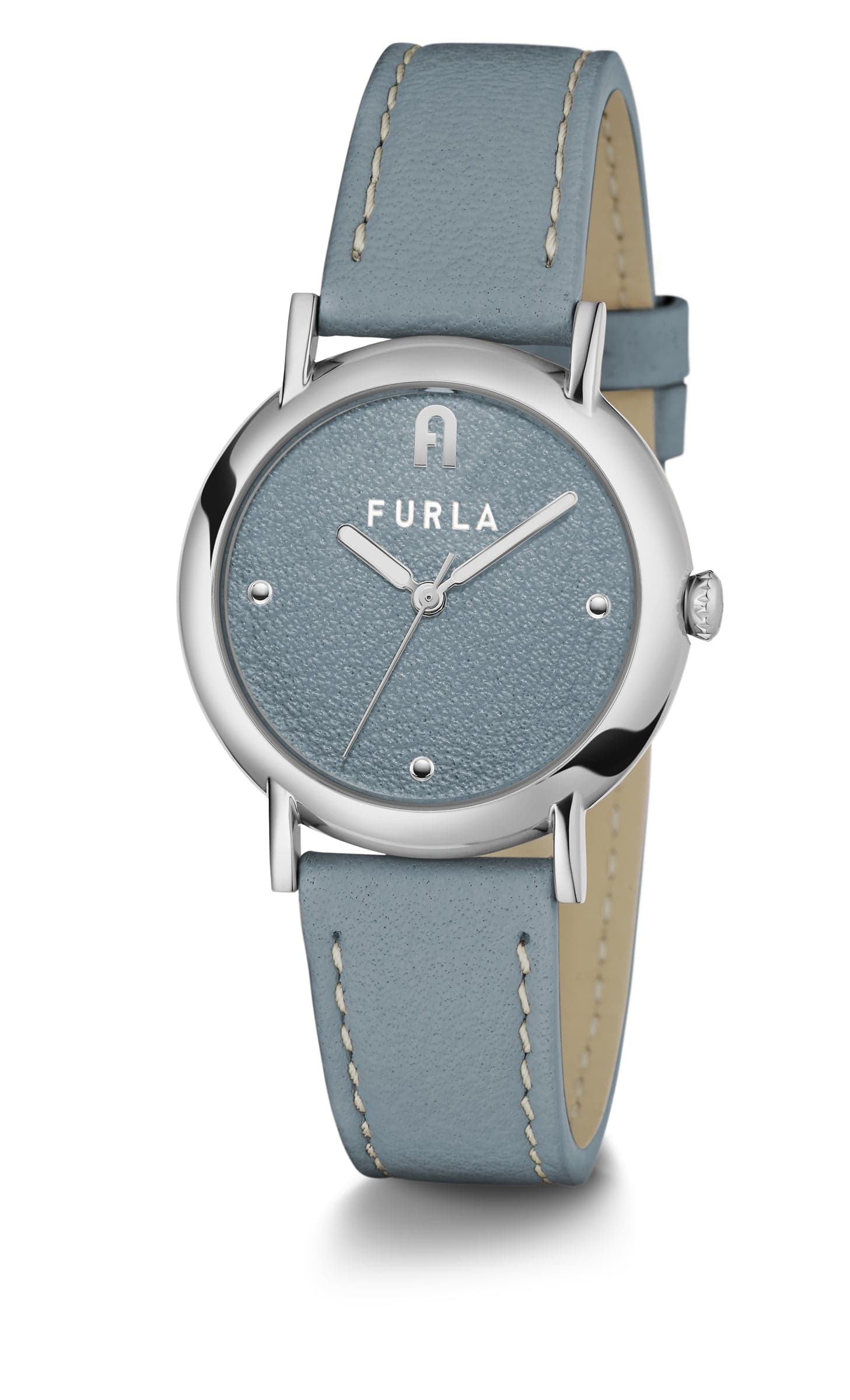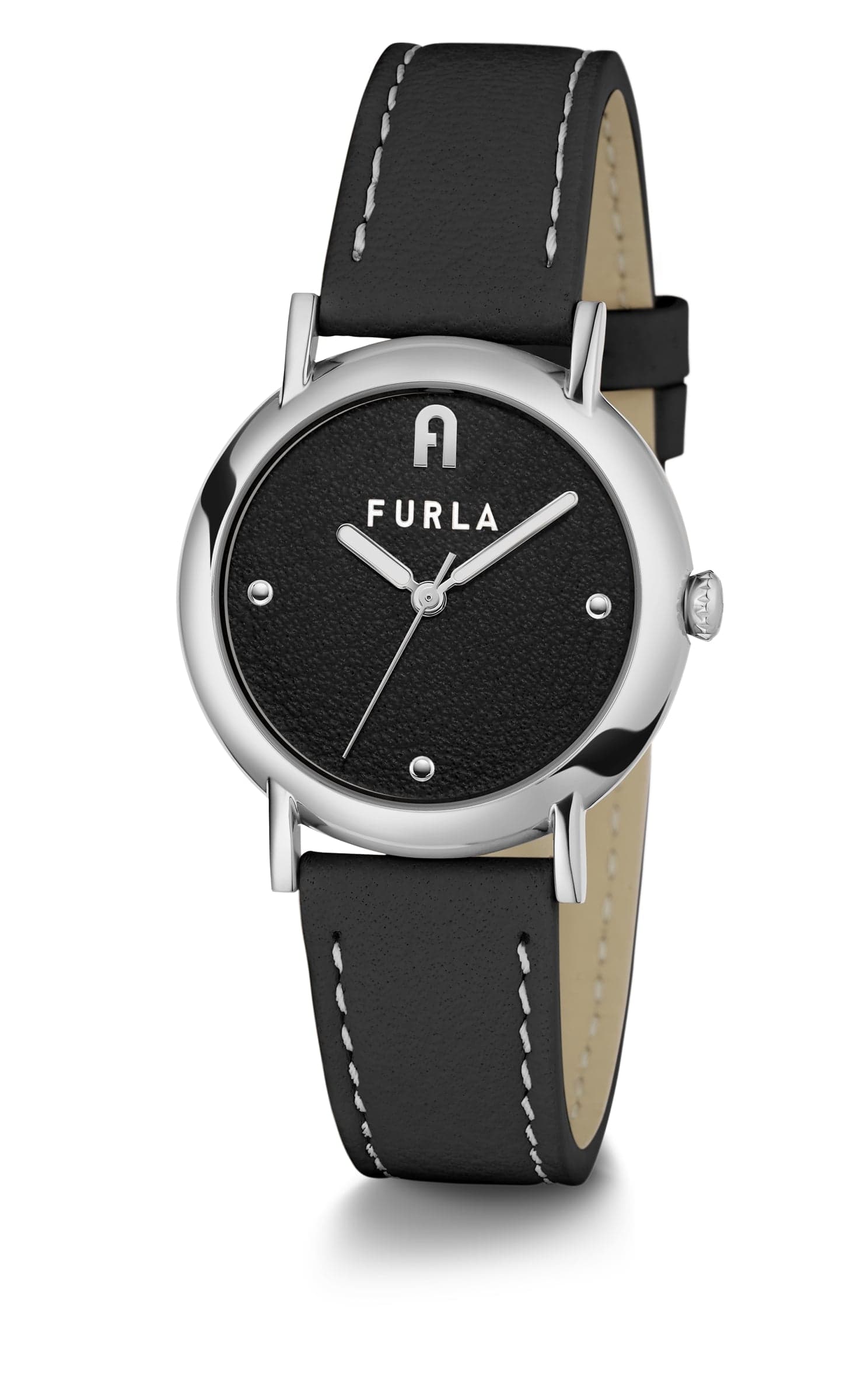 Minimal ed elegante, il quadrante degli orologi mostra l’iconico logo ad arco Furla a ore 12, e indici delicati che indicano le ore 3, 6 e 9.