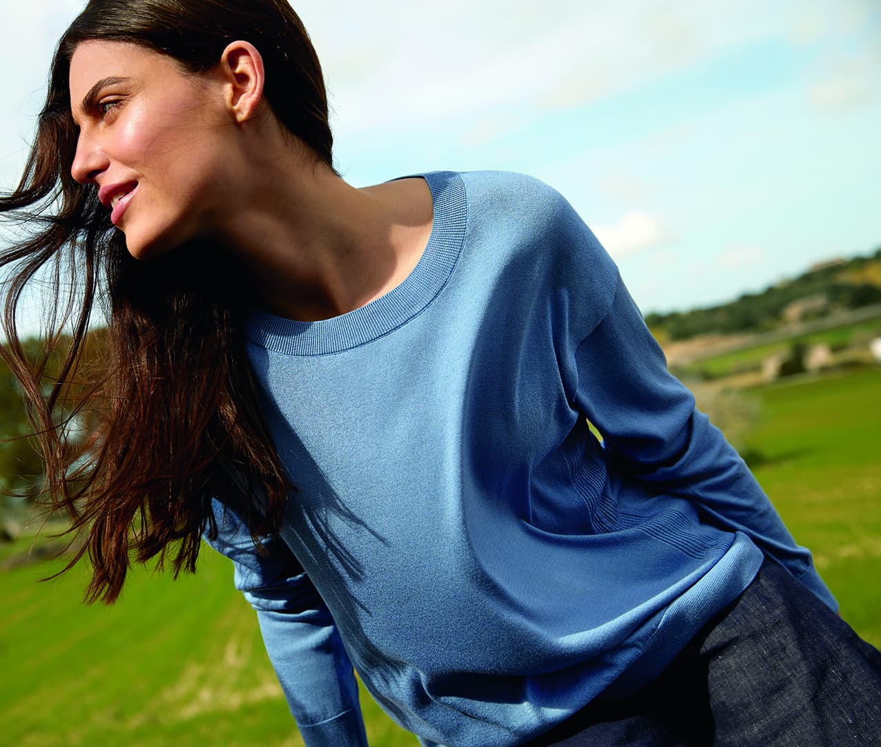 Tanti i modelli new classic tra cui scegliere: dalla maxi-maglia over a mezza manica con scollo a V davanti e dietro, passando per la maglia a manica lunga a palloncino e scollo a V, fino ad arrivare al versatile cardigan con bottoncini e bordi a costine. Super sofisticato il pull girocollo, leggero e a maniche lunghe, ideale per ripararsi dalla brezza estiva della sera e la T-shirt over mezzamanica e asimmetrica che, grazie al gioco di forme, ben si adatta ad ogni look.