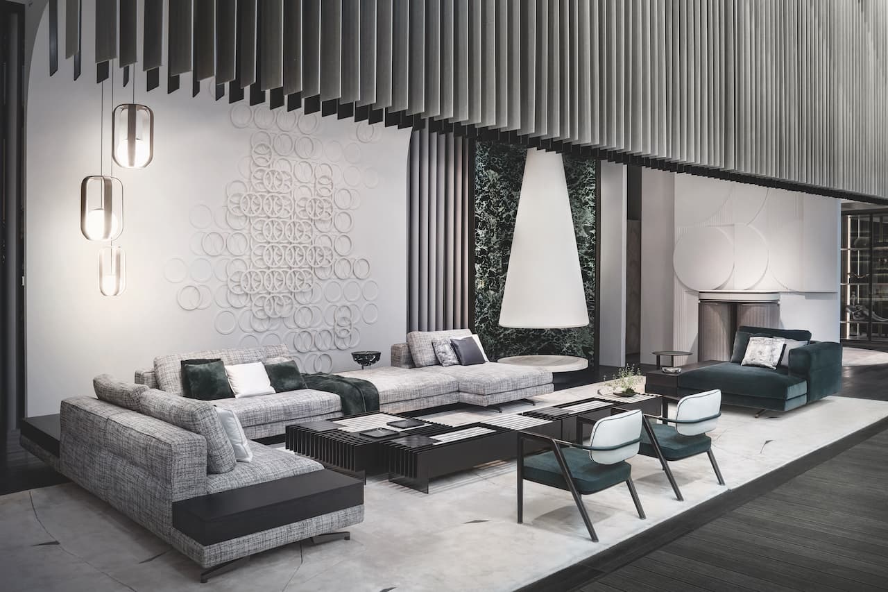 Il percorso espositivo dello stand è stato sviluppato in dieci ambientazioni che hanno messo in scena le novità Giorgetti insieme alle più recenti proposte e ai prodotti iconici.