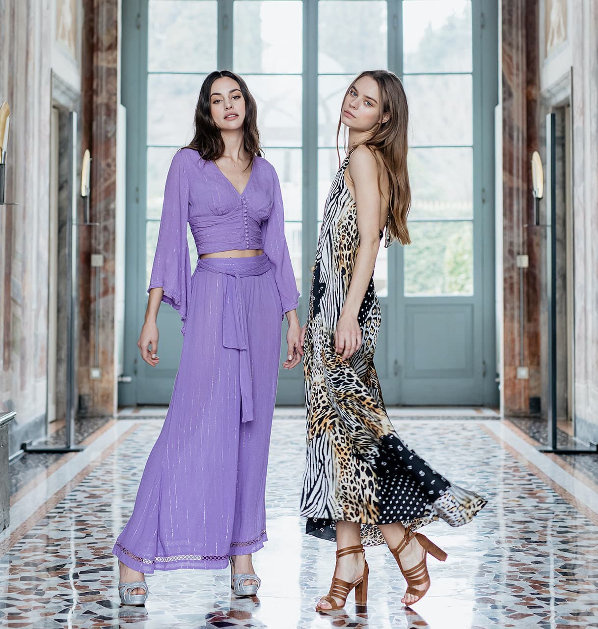 Protagonisti sono gli abiti in raso, di varie lunghezze per valorizzare le diverse fisicità senza rinunciare all’eleganza e alla femminilità. Così anche i nomi degli outfit richiamano personalità di spicco del jet-set internazionale, vere e proprie icone di stile, sempre attuali: Diana, Elizabeth, Marilyn, Stephanie, Alexandra, Carolina.