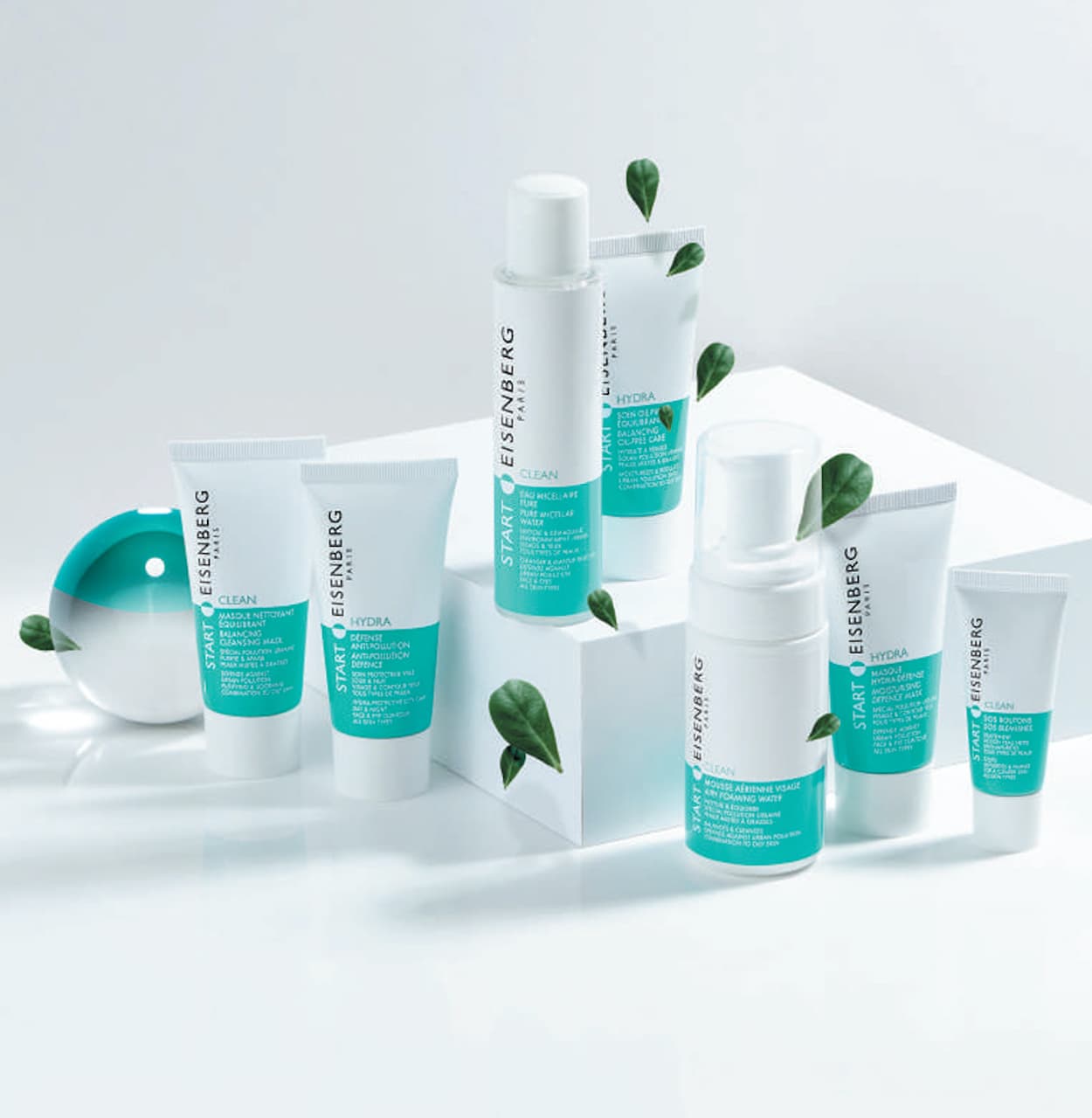 La detersione START CLEAN si compone di 4 prodotti: Eau Micellaire PurMousse Aérienne VisageMasque Nettoyant Equilibrant e SOS Boutons per contrastare aggressioni ambientali, eliminare le impurità, detergere il viso, restringere i pori e correggere le imperfezioni.