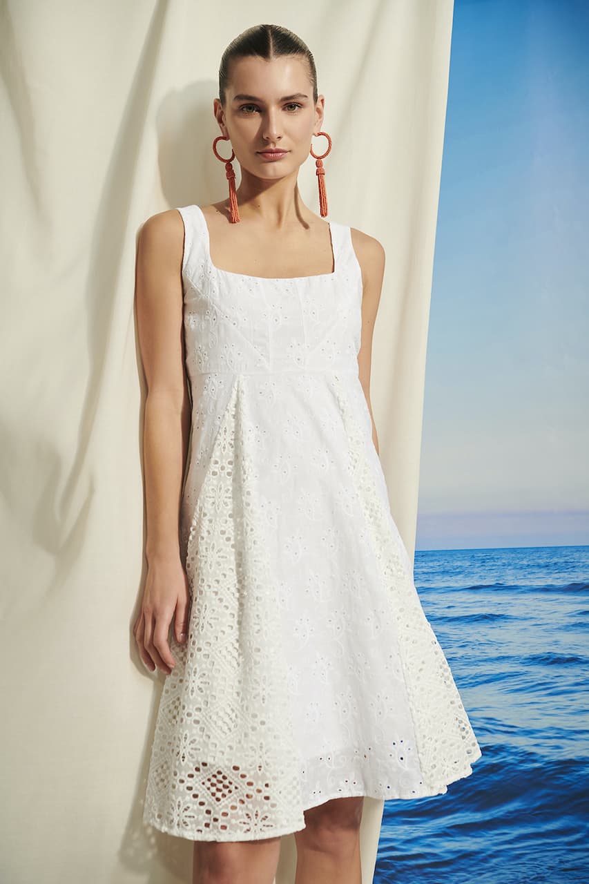 Immancabile nel guardaroba estivo la stampa maiolica, proposta da Camomilla Italia nei colori turchese e mais in versione all over o come dettaglio. I colori e la vivacità della penisola sorrentina, i toni dell’ibiscus in versione tye dye, la stampa allover floreale su fondo white e fiori di rubino, la stampa tropical, serpentine, carribean, accendono di glam i summer look perfetti per il giorno ma anche per un aperitivo al tramonto. Non può mancare in questo tema l’intramontabile sangallo di cotone, proposto da Camomilla Italia in combinazione con il pizzo per un minidress lezioso. Il viaggio estivo di Camomilla Italia si conclude con proposte di costumi e copricostumi raffinate e di tendenza.