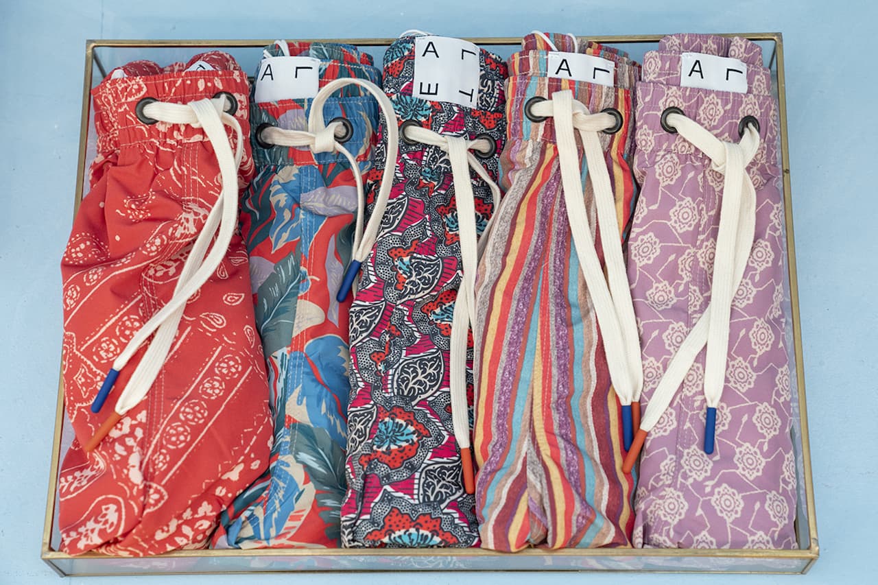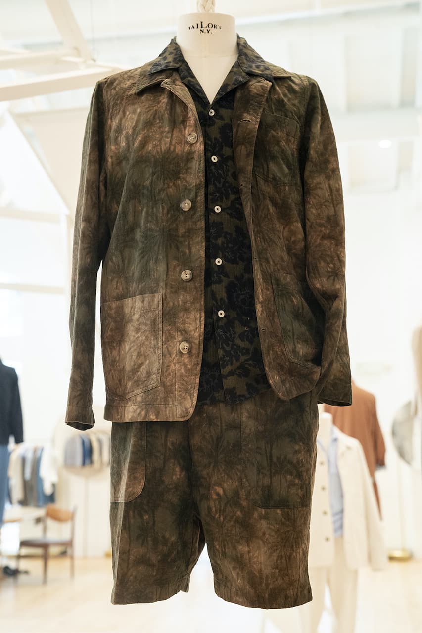 Continua la ricerca nei materiali in comunione con un attento lavoro artigianale. Lino, jacquard e nylon giapponesi diventano tele su cui dipingere con stampe dal sapore orientale, sovratinture e l’intramontabile tie dye.
