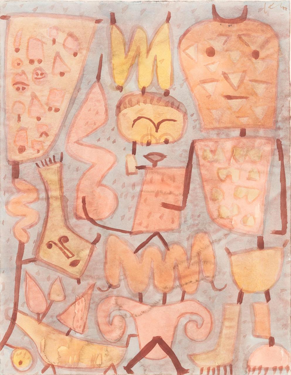 Il percorso prosegue con due sezioni dedicate all’esplorazione della figura umana e del mondo animale e alle suggestioni narrative che contraddistinguono molte delle opere in mostra. Le figure di Klee sono spesso delineate in maniera sintetica, pochi tratti bastano a suggerire un’espressione o un atteggiamento. Al tempo stesso quando nelle sue composizioni essenziali compaiono più personaggi, l’artista riesce a sempre stabilire una relazione dinamica e intrigante fra loro. Attento osservatore dell’agire umano, particolarmente interessato ad esplorare nella sua opera le interazioni sociali, Klee si diverte a creare scene dalle connotazioni drammatiche e caricaturali dove spesso sono proprio gli animali ad adottare comportamenti che fungono da specchio a contraddizioni e virtù dell’uomo.