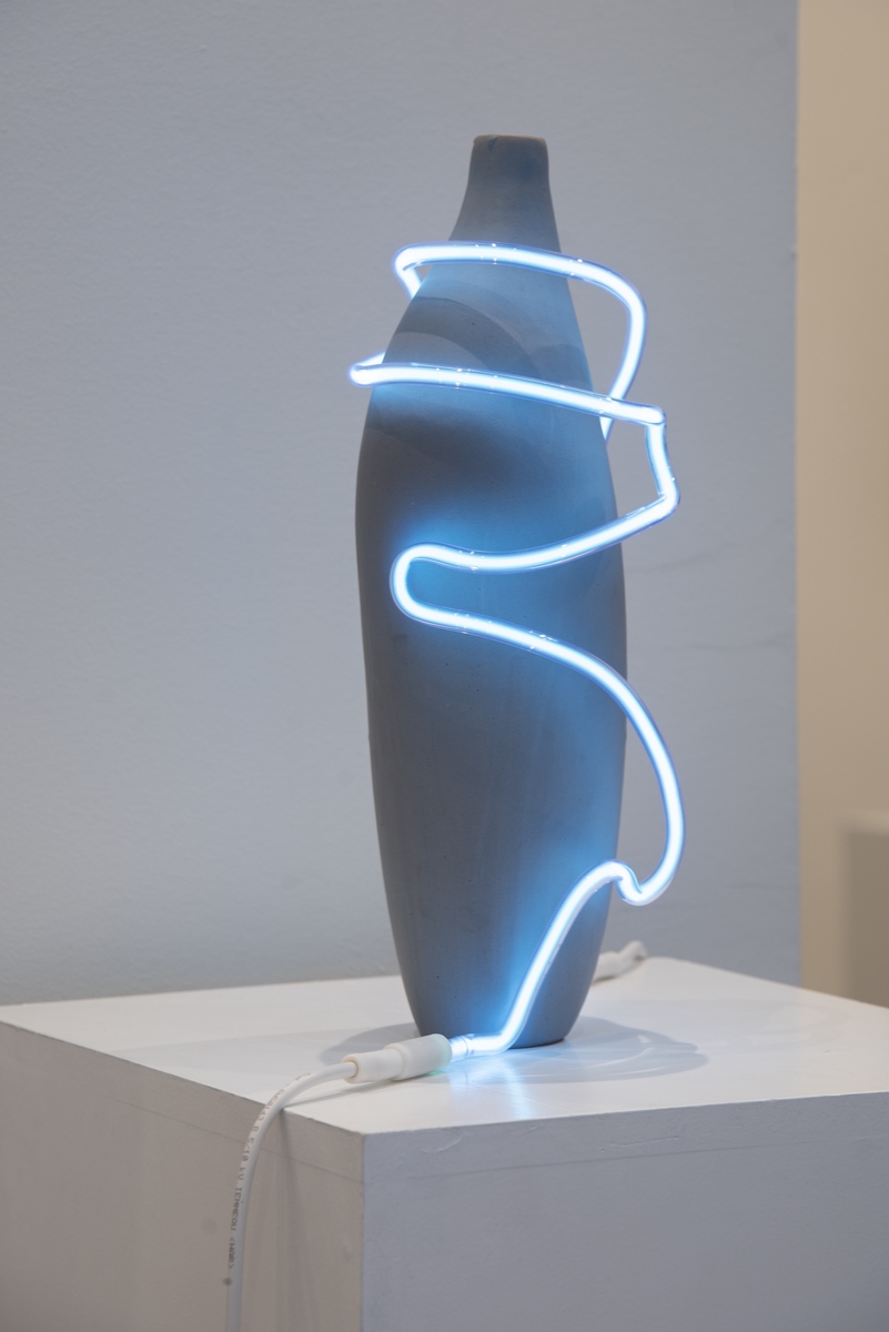 Quindici opere, alcune delle quali realizzate appositamente per la mostra, in cui interagiscono materia primigenia proveniente dalla terra e luce, neon e vetro. Un incontro dà forma ad una compenetrazione tra materiale e immateriale o, come affermava Hegel, a “Ombre sensibili”.