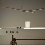 Lampada a sospensione in legno naturale regolabile in altezza su cavi di tenuta in acciaio. Un look essenziale e le venature a vista sottolineano la naturalezza del materiale e l’artigianalità dell’apparecchio che si armonizza in ogni stile di arredamento. La forma lineare e la possibilità di scegliere tra diverse dimensioni permettono soluzioni progettuali che rispondono alle nuove esigenze del living contemporaneo.