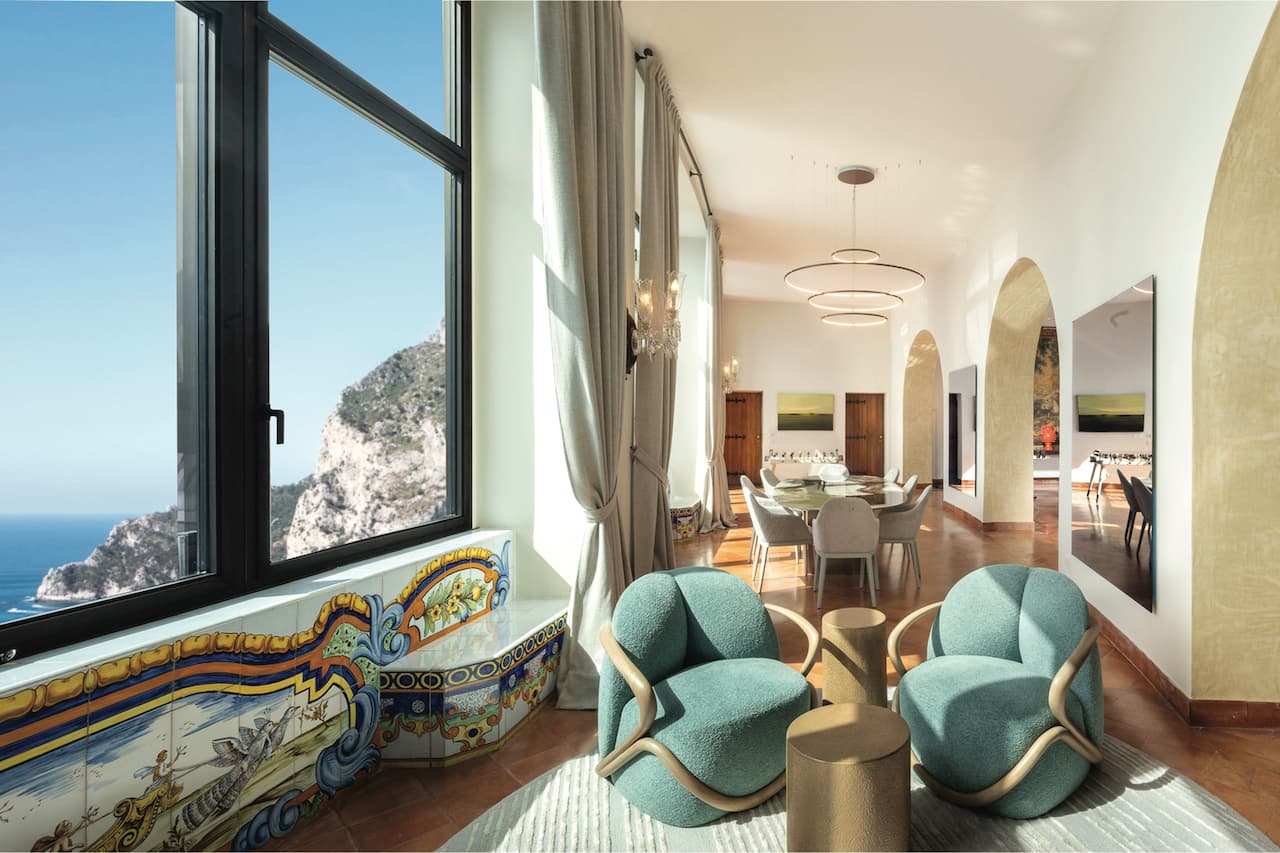 Un capolavoro di bellezza, a picco sul mare, dove cielo e terra sembrano toccarsi. A Capri, incastonata su una scogliera sopra la Marina Piccola, sorge sui resti di una delle ville dell’imperatore Tiberio e del successivo castello medievale Villa Castiglione, un’oasi di lusso che si affaccia sui Faraglioni, sul borgo, sulla costa meridionale dell’isola, con il golfo di Napoli all’orizzonte, offrendo lo scenario di un’esperienza indimenticabile.