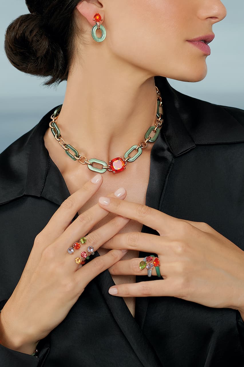 Le linee della collezione FW22 sono molteplici, ma perfettamente assortite tra loro. CHAIN UP si veste di nuovi colori intensi, con i quarzi idrotermali in forte contrasto rispetto alle nuances degli smalti, la linea ICON non rinuncia alle sue caratteristiche minimal shapes capaci di rendere protagonista assoluto il gioco di colore.