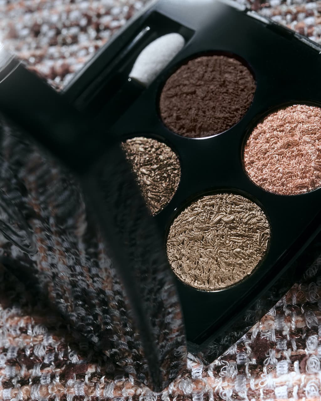 Per la nuova collezione, quattro creazioni esclusive si vestono di un motivo tweed a rilievo sulla superficie di ogni ombretto. Proprio come l’intreccio di fibre diverse dà vita al tweed, le quattro nuance dall’intensità modulabile si sfumano insieme per ottenere risultati make up chic e audaci. Per questa occasione speciale, i packaging sono impreziositi da una pochette in tweed creata dalla Maison Lesage, che fa parte dei Métiers d’Art CHANEL dal 2002.