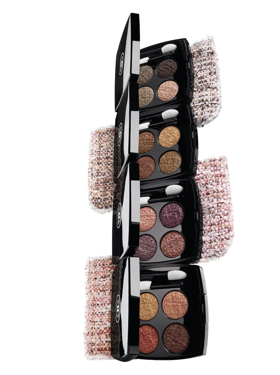 Per la nuova collezione, quattro creazioni esclusive si vestono di un motivo tweed a rilievo sulla superficie di ogni ombretto. Proprio come l’intreccio di fibre diverse dà vita al tweed, le quattro nuance dall’intensità modulabile si sfumano insieme per ottenere risultati make up chic e audaci. Per questa occasione speciale, i packaging sono impreziositi da una pochette in tweed creata dalla Maison Lesage, che fa parte dei Métiers d’Art CHANEL dal 2002.