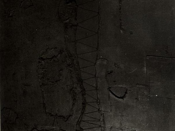 “Una mostra fatta di scoperte a partire dalla monumentale opera al nero; scoperte che proseguono alla Torre Unipol con altri quattro lavori emblematici – evidenzia la curatrice Ilaria Bignotti – Due di questi afferiscono al ciclo dei Catrami, entrambi datati 1950, scelti, nel percorso espositivo, per il dialogo che intessono con il grande Nero con punti, a partire dal problema della stratificazione e della composizione dei materiali.”