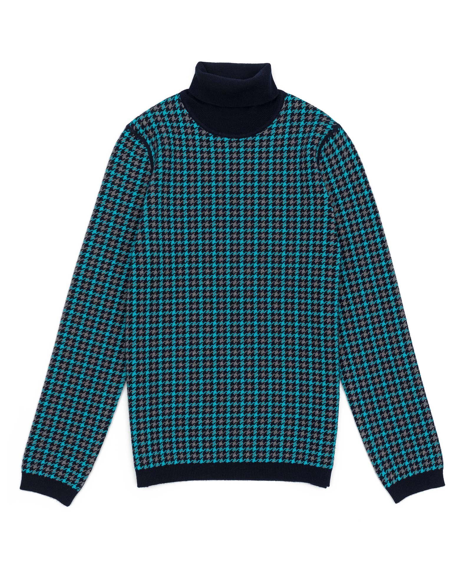 Per lui, cardigan sui toni dell’ocra e del marrone e maglione con collo alto sui toni del blu e dell’azzurro, realizzati in cashmere con una complessa lavorazione jacquard, un dettaglio unico dal gusto artigianale. La fantasia micro pied-de-poule è un omaggio alla classe senza tempo. La tecnica dello jacquard è ricca di storia e minuzia. Si tratta di una lavorazione a maglia realizzata con colori diversi in cui si ha un disegno, non ricamato bensì incorporato nel fondo.