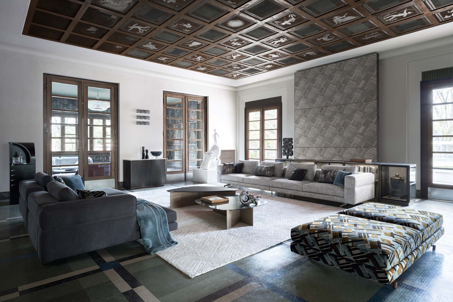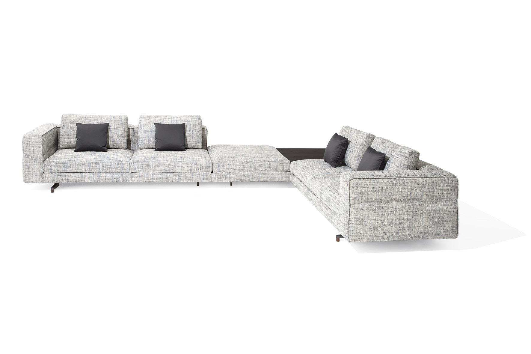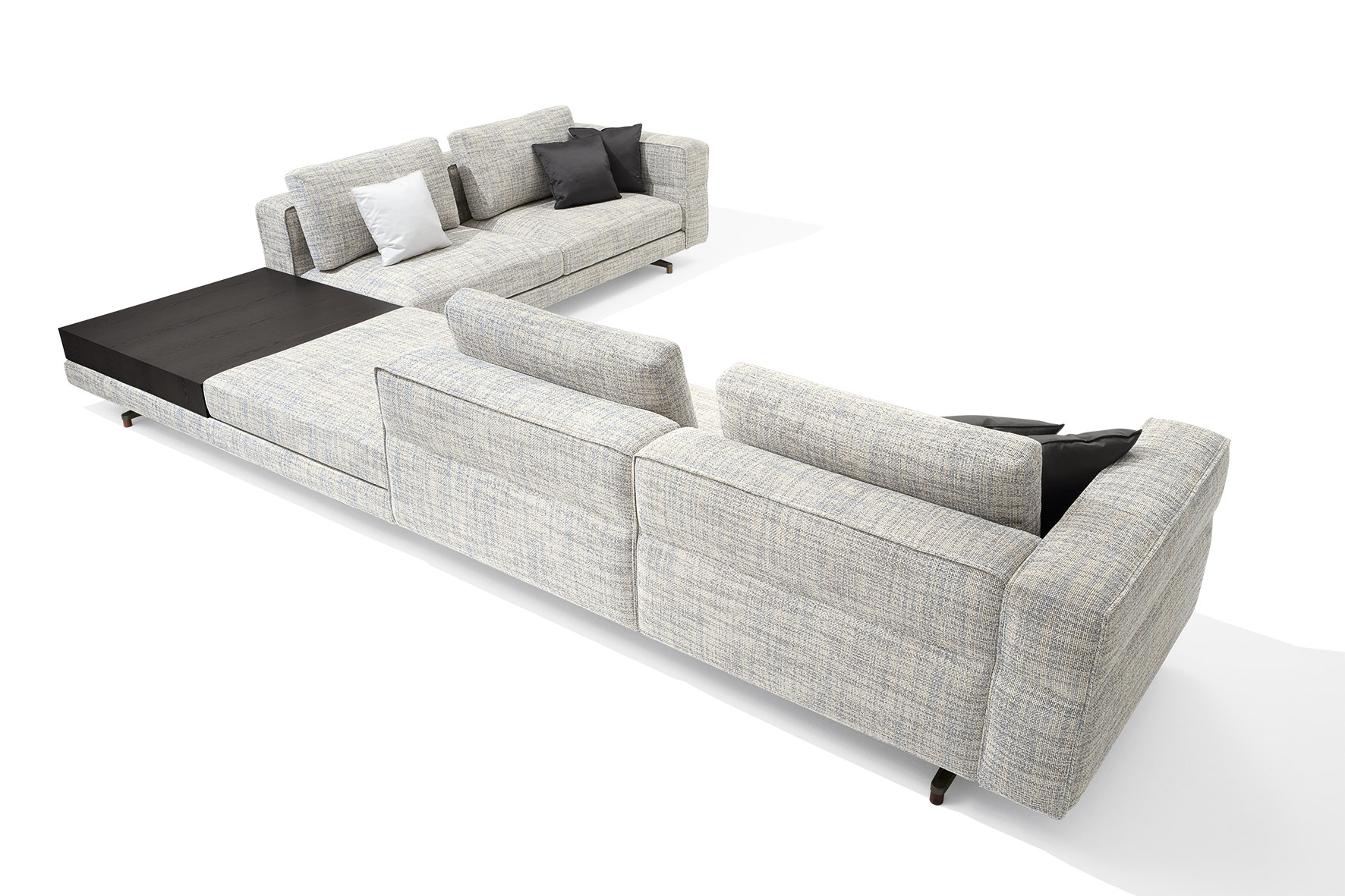Flessibilità e personalizzazione sono al centro del progetto. Un vero e proprio sistema che, grazie ai numerosissimi elementi a disposizione e una doppia profondità di seduta, offre infinite possibilità progettuali. Come un’isola multitasking, SoHo può inoltre essere integrato con tavolini in legno intarsiato Anthology o frassino che ne ampliano la funzionalità. I singoli elementi sono utilizzabili anche freestanding.