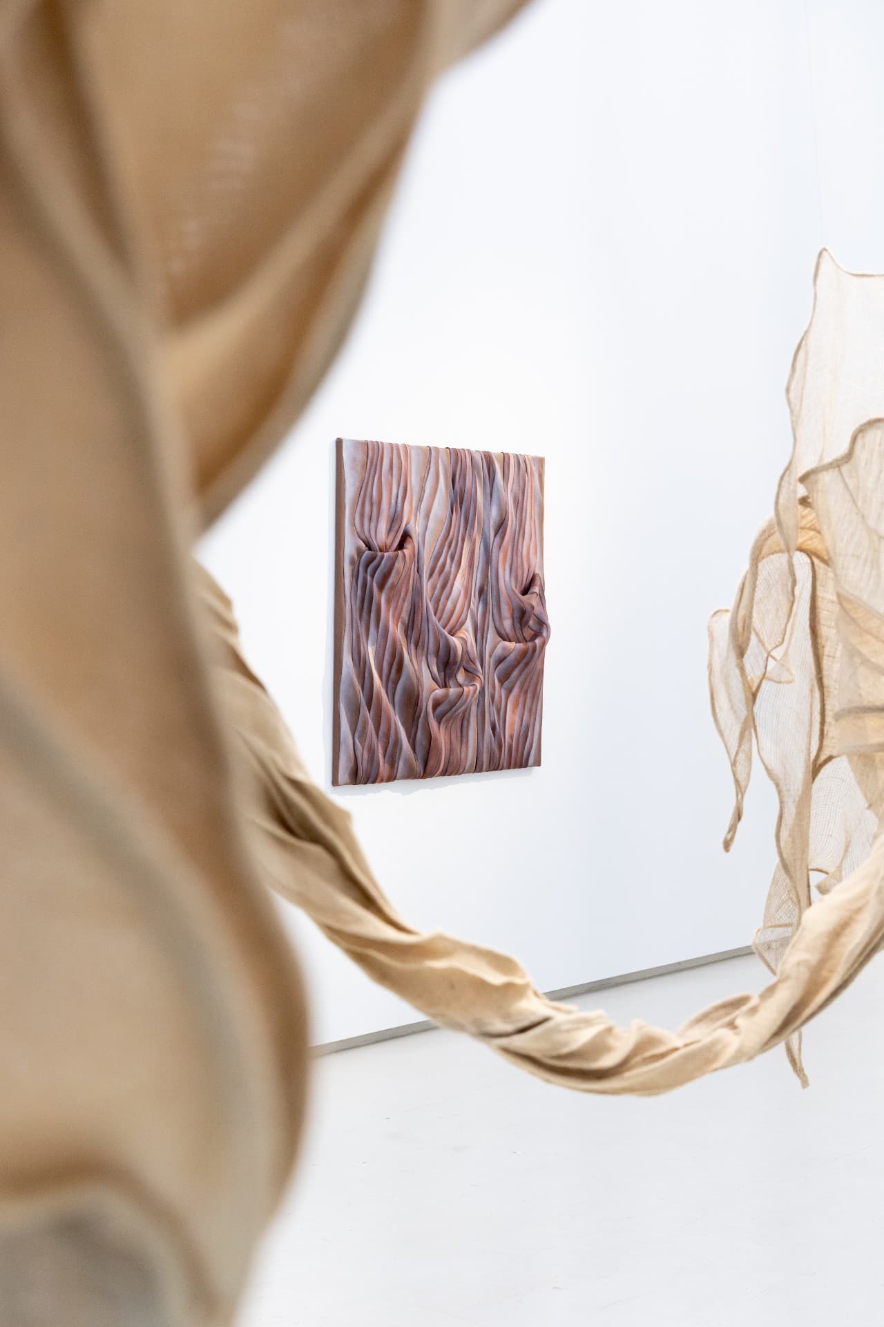 Le grandi sculture tessili, che allestiranno lo spazio milanese di Foro Bonaparte rendendolo immersivo e molto scenografico, sono tutte intrinsecamente fluide e portano segni di mobilità e movimento come fossero coreografie dinamiche, che in un viaggio di esplorazione, prendono forma decidendo quasi in autonomia l’opera d’arte finale. Come labirinti in cui le superfici cambiano direzione, i pezzi di Diana sono creati in movimento, i tessuti danzano, i paesaggi emergono, scompaiono in se stessi o si liberano dalle loro cornici. Un processo ripetitivo in cui la forma e l’unità dei componenti creano un presupposto per perdere il controllo. Alla scoperta di nuove strade e contorni, un atto di equilibrio in cui la mano apre la strada. Area dopo area appare e appare – come un corpo, una linea, un portale verso stanze nascoste.