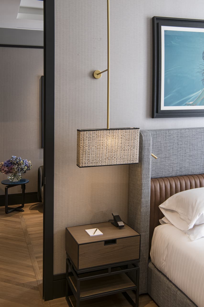 Le camere Superior e Prestige hanno una grandezza che varia dai 25 mq ai 35 mq., mentre le suite variano dai 35 mq. ai 65 mq. Tutte dotate di ogni comfort, hanno bagni rivestiti di marmi pregiati e ampie cabine armadio, pavimenti in parquet o moquette e soffitti enfatizzati dall’utilizzo sapiente di boiserie in legno. Le suite e gli appartamenti comprendono un salotto separato dalla camera e dispongono di una zona cottura, ideale per lunghi soggiorni.
