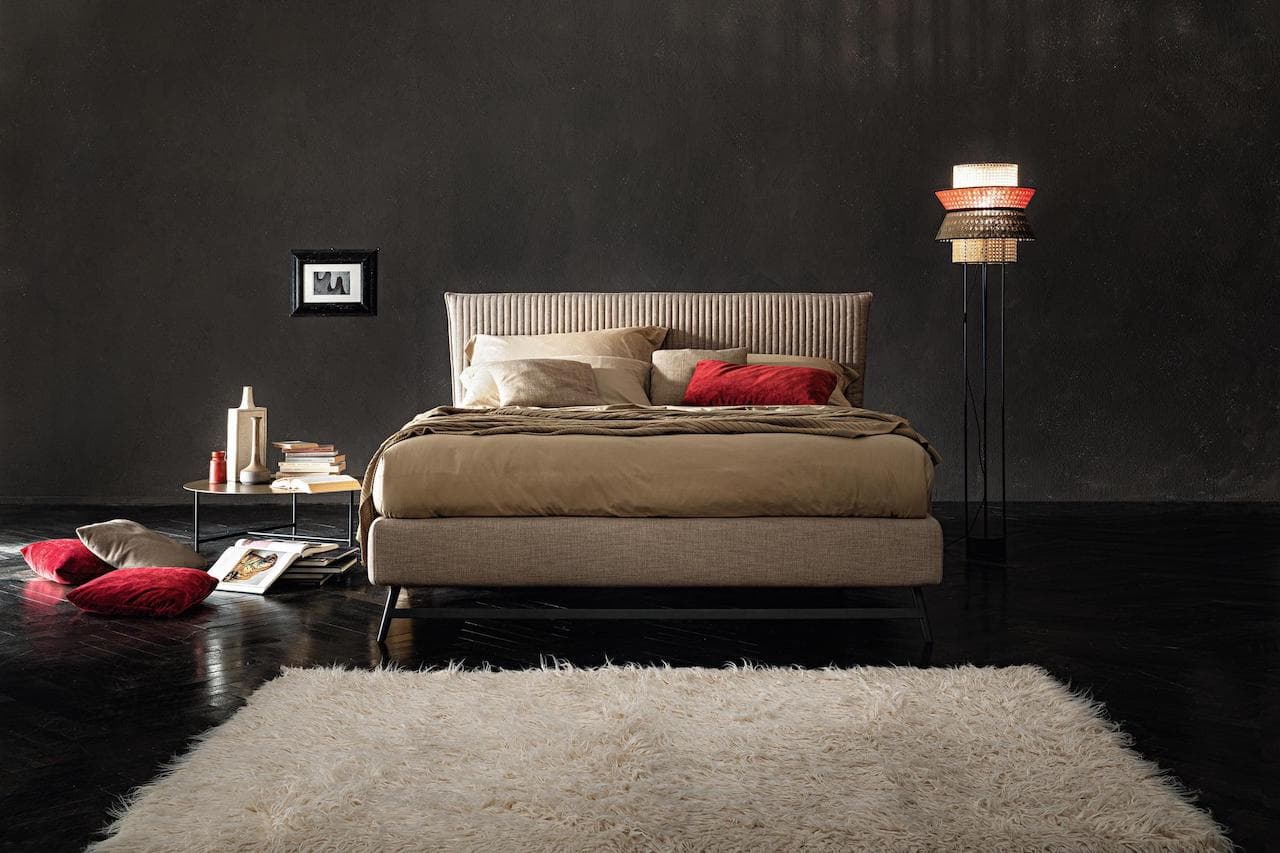 Il buon dormire è anche attenzione all’ergonomia grazie a Tilt, letto matrimoniale in tessuto, pelle o ecopelle sfoderabile, con piano ortopedico in legno, testiera ergonomica che consente diverse pozioni relax, per leggere a letto.