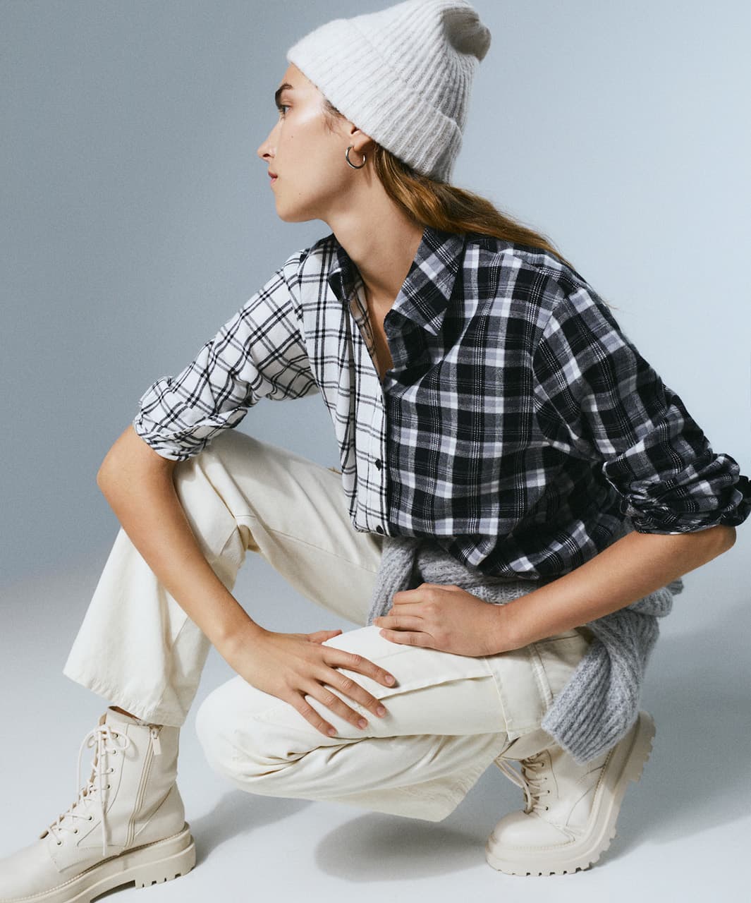 In questa capsule Stradivarius recupera uno dei capi più caratteristici del grunge: la camicia a quadri, perfetta da indossare aperta su maglieria, pantaloni bianchi flare e stivali della stessa gamma di colori. Il segreto è giocare con la stratificazione per creare look all’apparenza improvvisati, ma dove nulla è mai lasciato caso. La flanella aggiunge un tocco di calore agli outfit, che diventano perfetti per le giornate fredde, quando completati da cappelli di lana stile beanie e sciarpe XL.