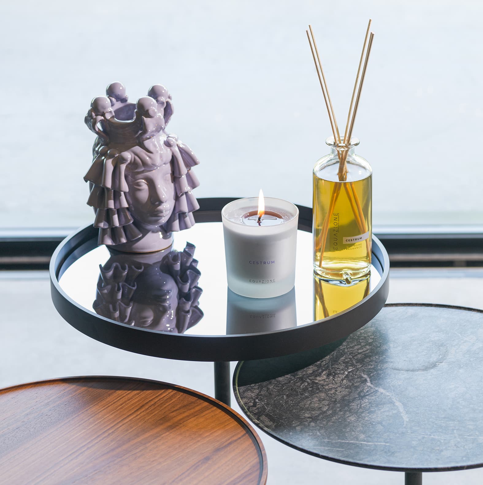 - HOME FRAGRANCE – Fragranze realizzate con purissimi oli essenziali ed estratti botanici, privi di coloranti chimici e con alcol di origine vegetale. Un viaggio che passa per la tradizione e l’innovazione, attraversa un luogo lontano, ricco di storia, di Sicilia, di note olfattive che sanno di ricordi. Anche per il Profumatore EQUAZIONE ha prestato la massima attenzione alla lavorazione e alla produzione per assicurare un prodotto naturale, totalmente privo di coloranti chimici. Le fragranze sono realizzate con purissimi oli essenziali ed estratti botanici, coltivati in Italia e con lavorazione 100% Made in Italy, ottenute per miscelazione e decantazione in alcol di origine vegetale. Anche il flacone è in vetro riciclabile.