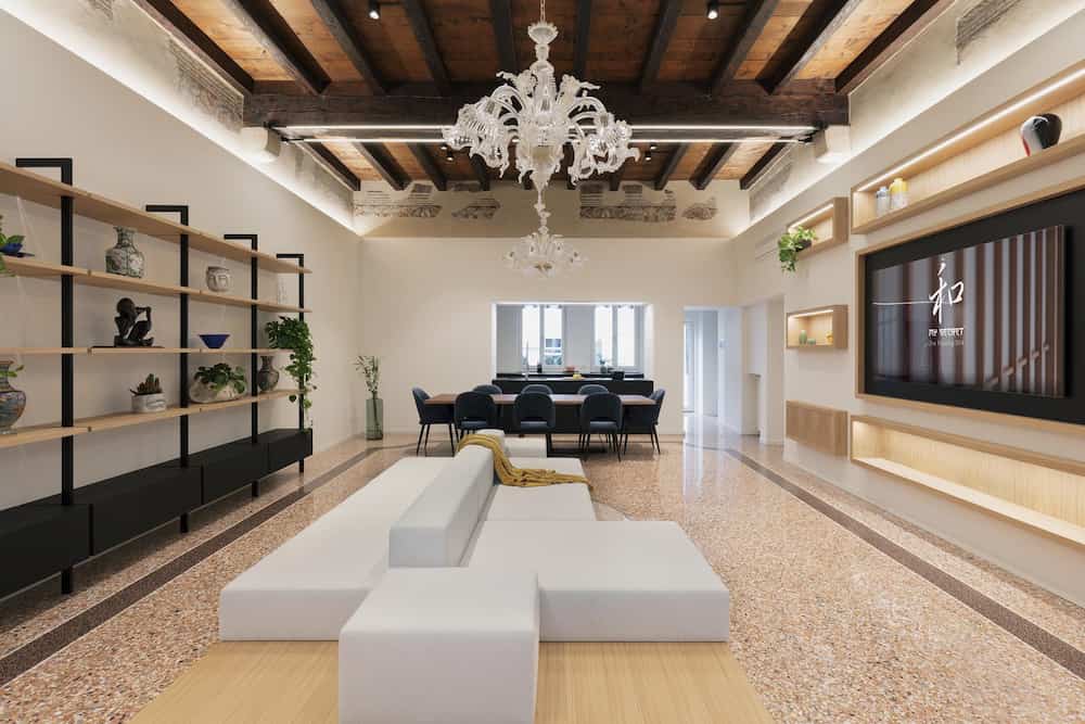Non manca infine la componente tecnologica: l’ingresso principale avviene direttamente da un ascensore privato e un impianto di ventilazione meccanica controllata gestisce dal punto di vista termico e igrometrico l’ambiente, oltre a compiere una costante attività di purificazione dell’aria.