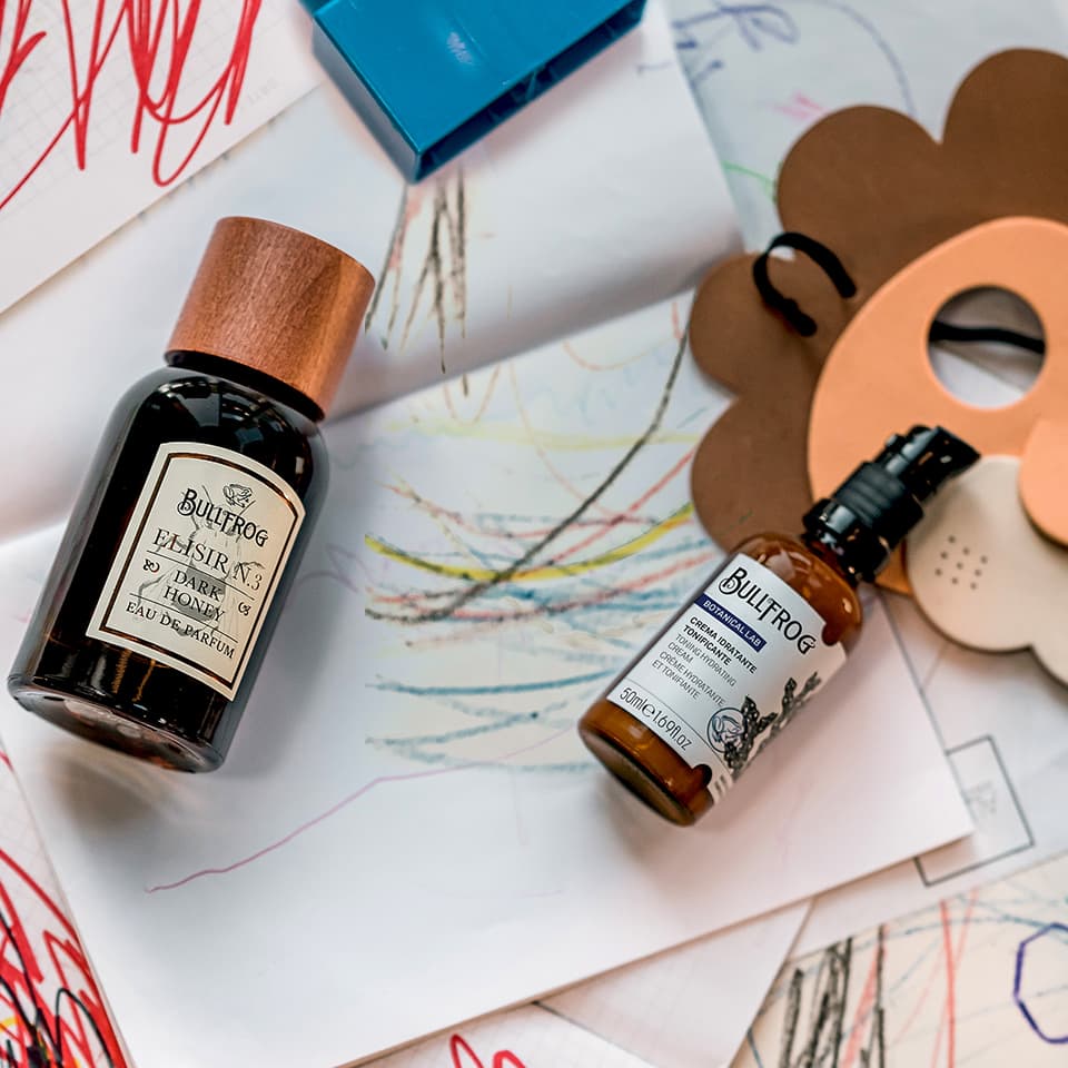 Poi c’è il Bullfrog-Papà “spendaccione”, alias Mirko, il consigliere del gruppo, collezionista di sneakers, amante dello shopping. I suoi prodotti comprati e ricomprati sono la Crema Idratante Tonificante e Elisir N.3, la sua “signature scent”, una fragranza inebriante dove la dolcezza del miele si mescola a sentori di cuoio.