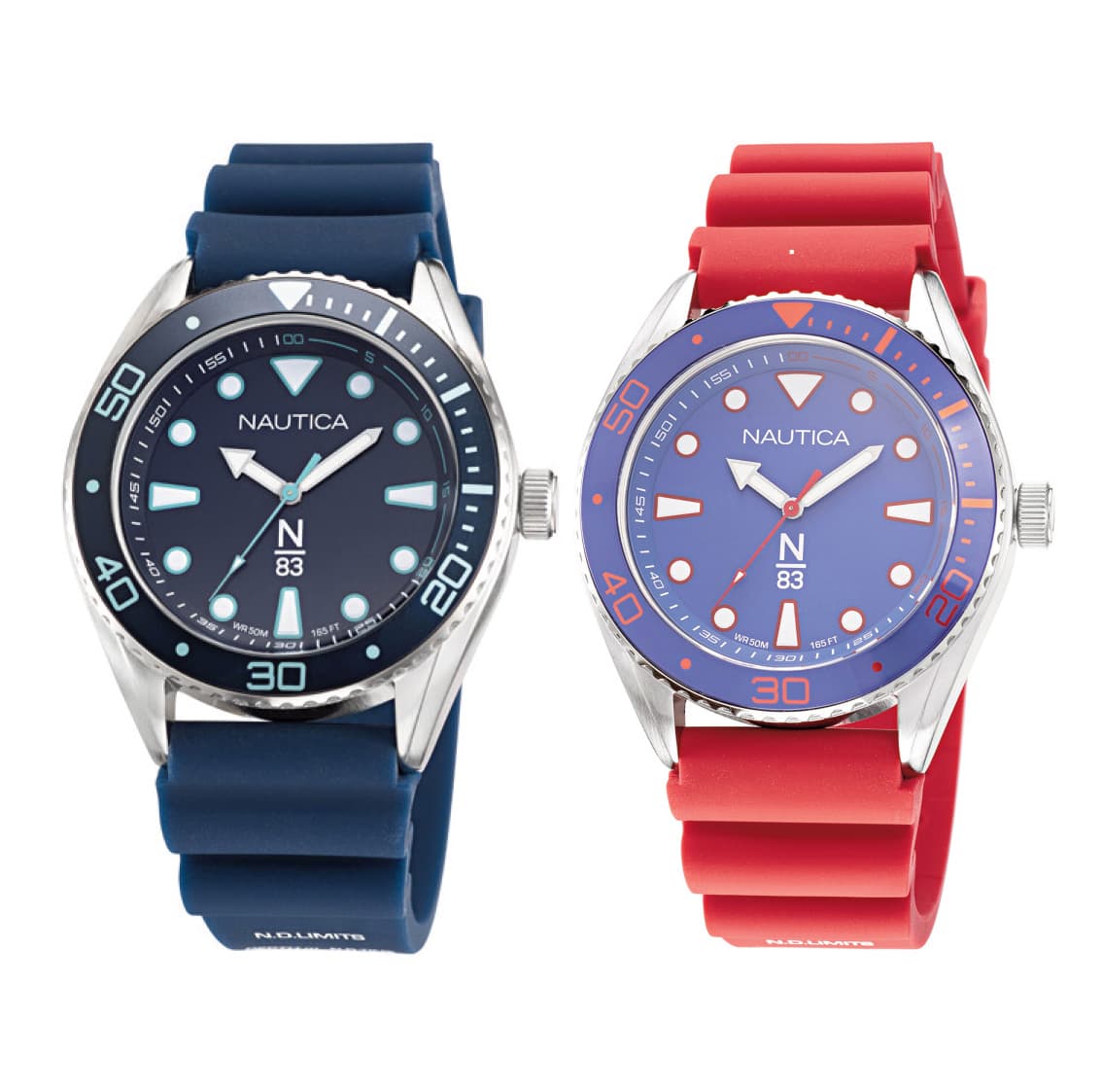 N83 di Nautica arricchisce la propria celebre collezione Finn World Diver con nuovi colori che contribuiscono ad accentuare il look diver dei segnatempo. Votati alla passione per il mare, i segnatempo della collezione scelgono inedite tonalità come il rosso e il blu, colori che li avvolgono in ogni dettaglio.